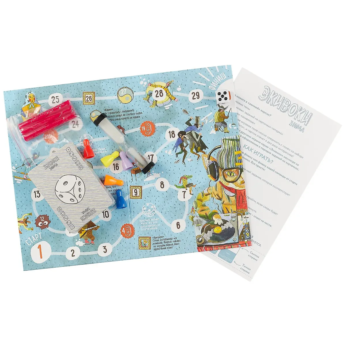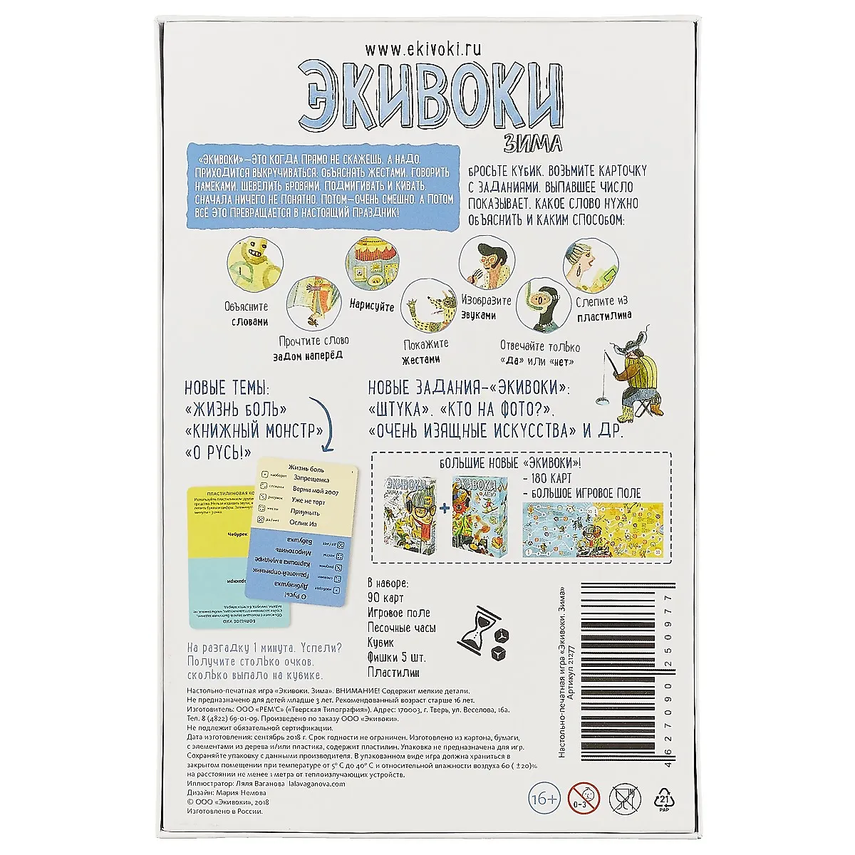 ВСТРЕЧАЙТЕ НОВУЮ СЕРИЮ КОМПАКТНЫХ ИГР «ЭКИВОКИ». В каждой коробке: • 90 новых карт • игровое поле, • песочные часы, • кубик, • пластилин • 5 фишек • пластиковый ложемент