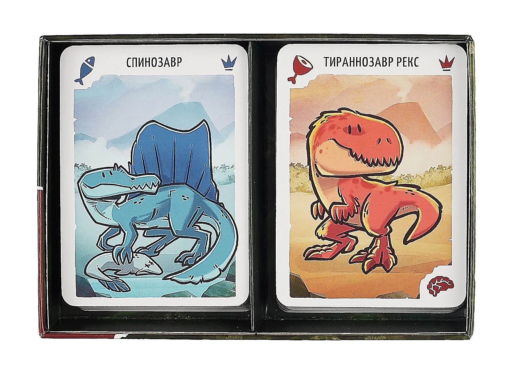 "Игра на вымирание" – яркая карточная игра, которая отлично подойдёт для семейного вечера. Цель игроков – исследовать Затерянный мир, в котором ещё сохранились многие виды динозавров, и постараться спасти как можно большее их количество до тех пор, пока не начнётся извержение вулкана. Помещать динозавров предстоит на безопасные территории, строго соблюдая их требования по питанию: плотоядным динозаврам придётся охотиться на менее удачливых сородичей (или довольствоваться приманкой), а рыбоядные будут то и дело устраивать "рыбалку" в колоде ваших соперников. Как бы вы ни хотели сберечь всех динозавров, будьте предельно внимательны: счастливое спасение может обернуться эффектом бабочки, которое может серьёзно повлиять на ход игры и приблизить извержение.