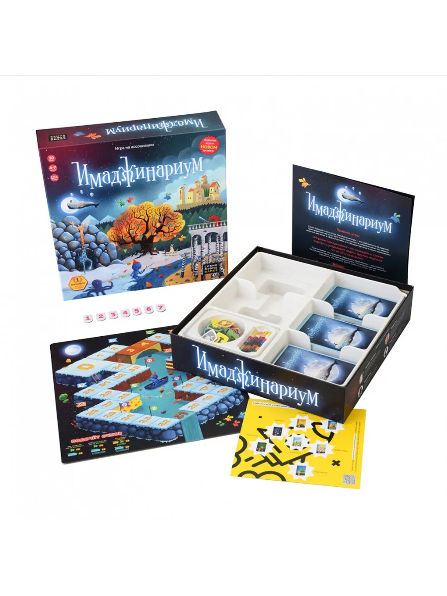 Добро пожаловать в Имаджинариум! В мир удивительной игры, где победитель определяется не ловкостью рук и везением, а проницательностью и глубиной воображения. 8 мир фантазий и ярких образов, в котором вам предстоит придумывать ассоциации и угадывать ассоциации других игроков. И как не бывает двух одинаковых людей, так и каждая партия Имаджинариума уникальна и неповторима. Зовите друзей и погружайтесь в волшебную атмосферу игры! Количество игроков: 4 - 7. В наборе: игровое поле, 49 жетонов, 7 фигурок, 98 карт, нумераторы карт, правила. Упаковка: картонная коробка. Для игроков от 12 лет.