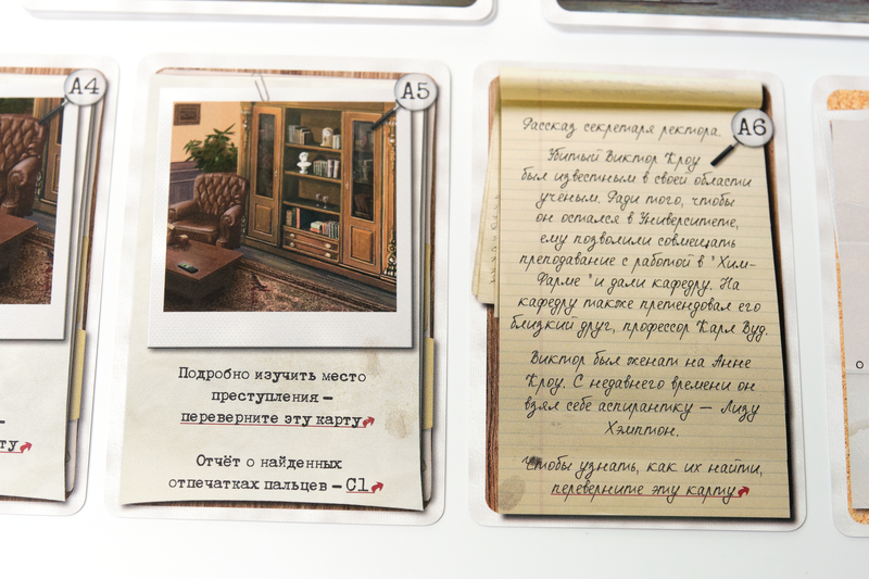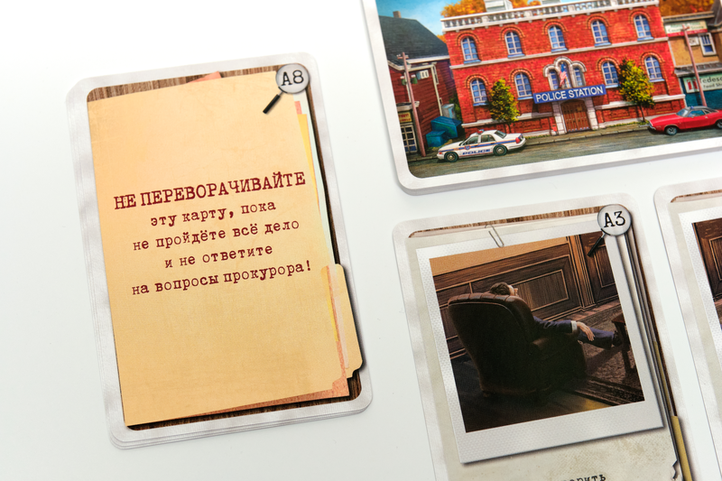 разработка отечественного автора Юрия Ямщикова. Это компактная игра, которая проверит вашу способность логически мыслить. Если вы хотите провести время с вашими друзьями, но не готовы углубляться в сложные правила. В этой игре нет поля, нет правил, все, что вам нужно — это колода с захватывающей детективной историей. Все, что вам нужно сделать — открыть колоду и все, игра началась. Главным вашим ресурсом здесь является время, которое влияет на тот или иной исход в ходе игры. Несмотря на то, что игра достаточно компактна, она заставляет вас и ваших друзей довольно обширно смотреть на происходящую ситуацию. В этой игре вам предстоит распутать клубок событий повлекших за собой чью-то смерть. Собирайте улики, опрашивайте подозреваемых, опираясь на логику и дедукцию. Когда вы справитесь с этим делом, то отправляйтесь в офис к прокурору, чтобы ответить на все вопросы об этом преступлении. И в зависимости от того, какие доказательства вы собрали и сколько потратили на это время шеф полиции даст вам характеристику по которой будет понятно, стоит ли вам дальше заниматься детективной деятельностью или попробовать себя в чём-то другом.