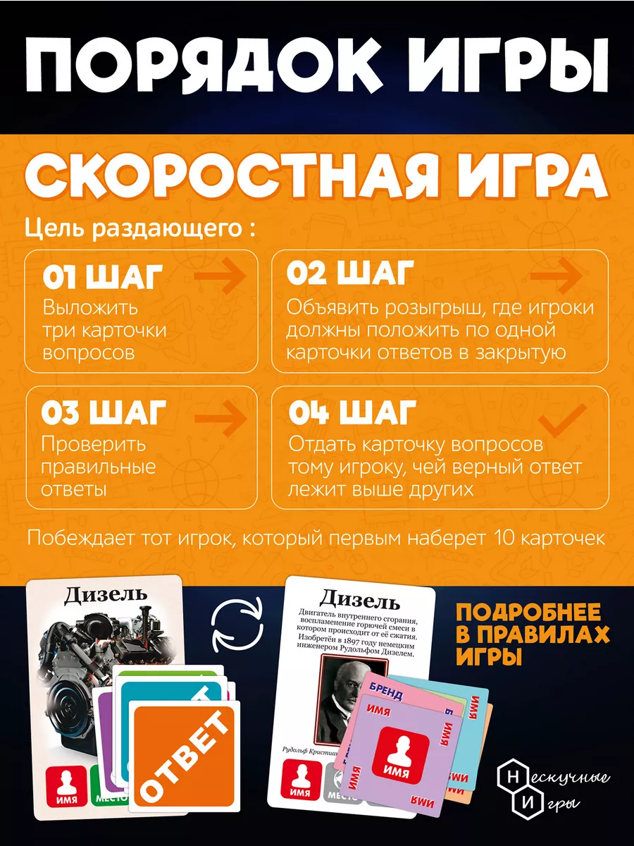 Это веселая игра-викторина на сообразительность и реакцию. Игроки на скорость решают, откуда произошли названия, указанные на картах: Имя, Место или Бренд. И выкладывают в закрытую соответствующие карточки ответов. Чем быстрее игрок даёт верный ответ, тем больше шансов на победу. Игра основана на ранее выпускаемой игре «Эпонимусы»