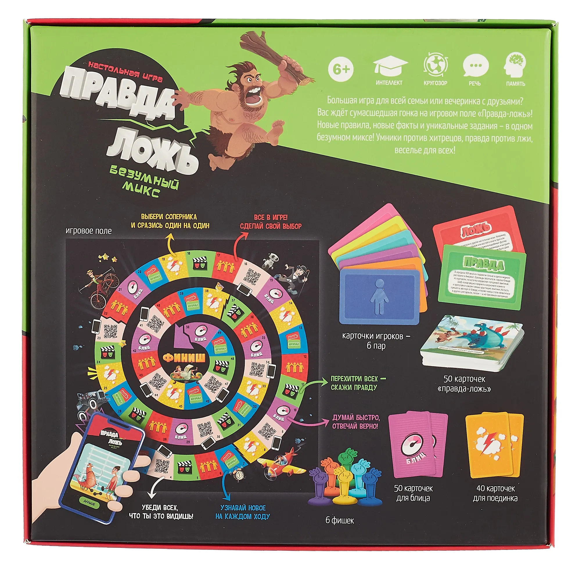 Легендарная «Правда-ложь» – теперь в формате большой игры! Приготовьтесь к сумасшедшей гонке: вас ждёт 6 захватывающих раундов, новые интересные факты и много веселья. Отвечайте на каверзные вопросы, угадывайте, о чём думают другие игроки, и импровизируйте на ходу, чтобы прийти к финишу первым!