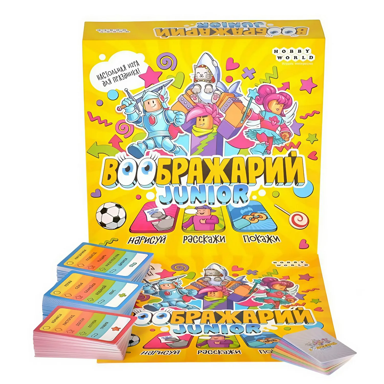 "Воображарий Junior" – это новый представитель в отличной серии настольных игр, построенных на ассоциациях. На этот раз игра была разработана специально для детей от шести лет и старше. Это отражается в адаптированных правилах, дизайне и, конечно, более подходящем наборе слов на карточках. Не бойтесь, что слова станут слишком простыми – игра предлагает два уровня сложности, где среди простых заданий вы встретите слова тип "мультфильм", "детский сад" или "микроб", а среди сложных "гордость" или "блокада".