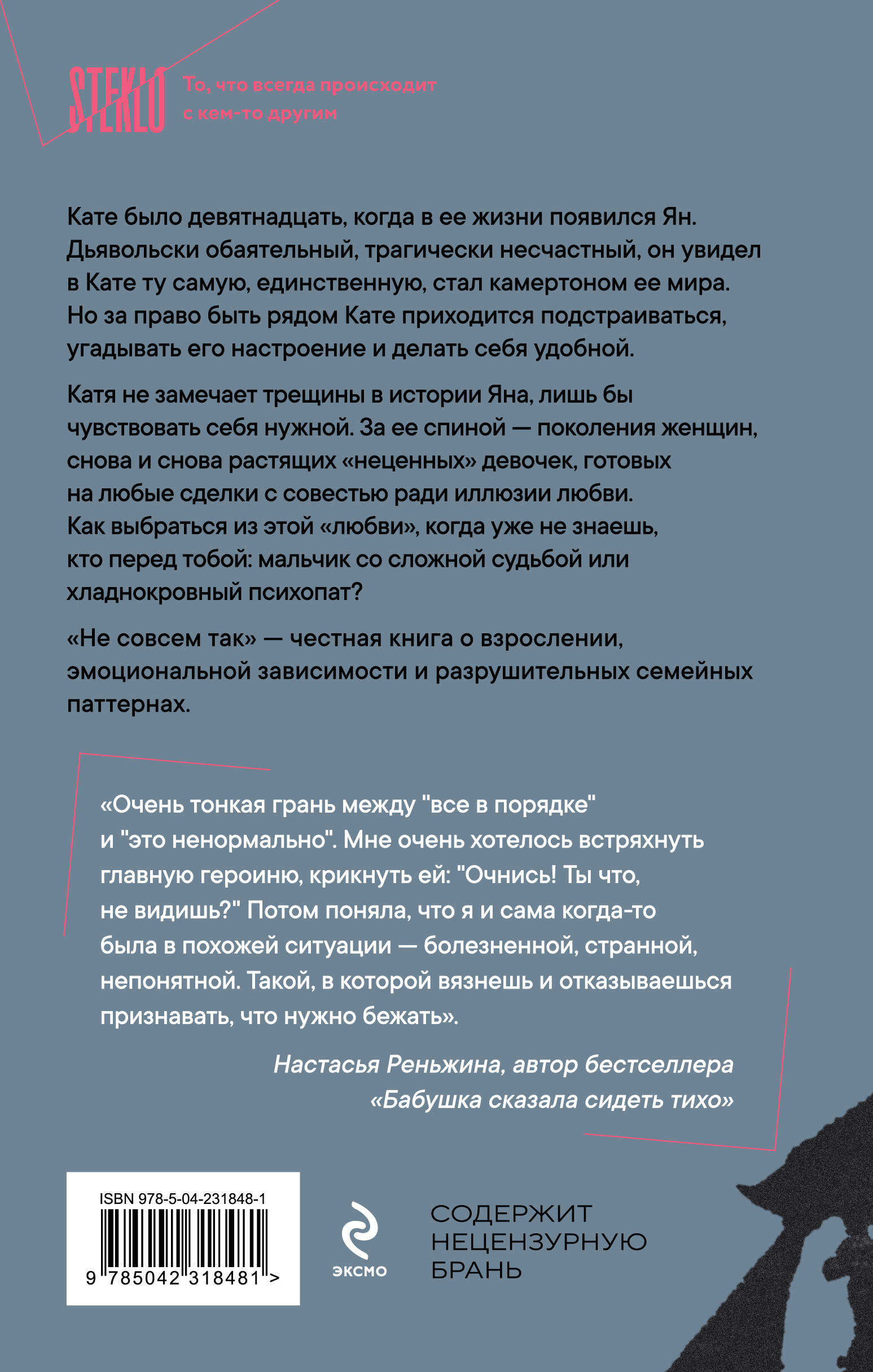 «Не совсем так» — честная книга о зависимости, эмоциональных качелях, отношениях с нарциссом и патологическим лжецом. О том, как боль переплетается с личной силой и как трудно разорвать цепь, поколение за поколением учившую девочек не ценить себя.