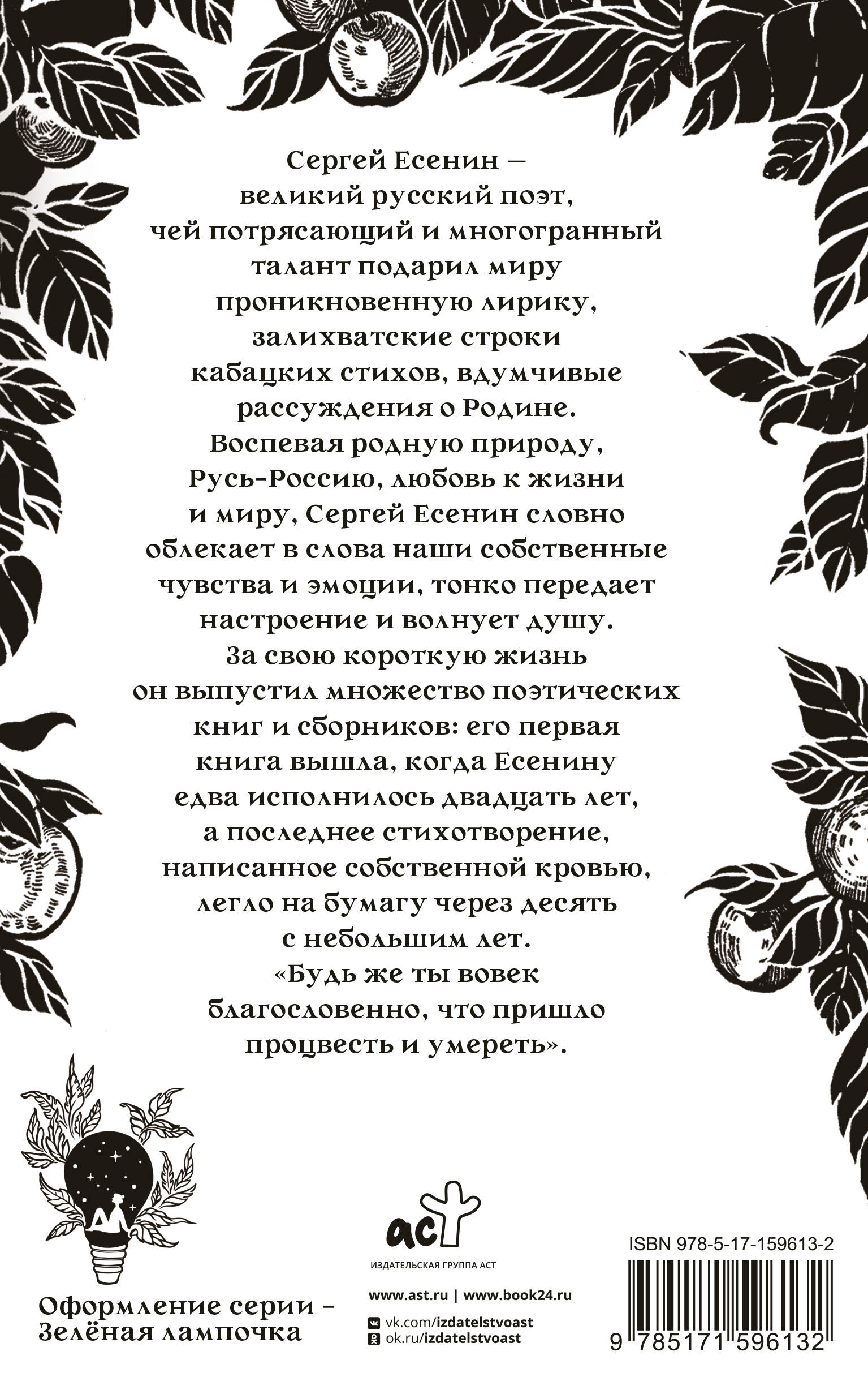 Сергей Есенин — великий русский поэт, чей потрясающий и многогранный талант подарил миру проникновенную лирику, залихватские строки кабацких стихов, вдумчивые рассуждения о Родине. Воспевая родную природу, Русь‑Россию, любовь к жизни и миру, Сергей Есенин словно облекает в слова наши собственные чувства и эмоции, тонко передает настроение и волнует душу.