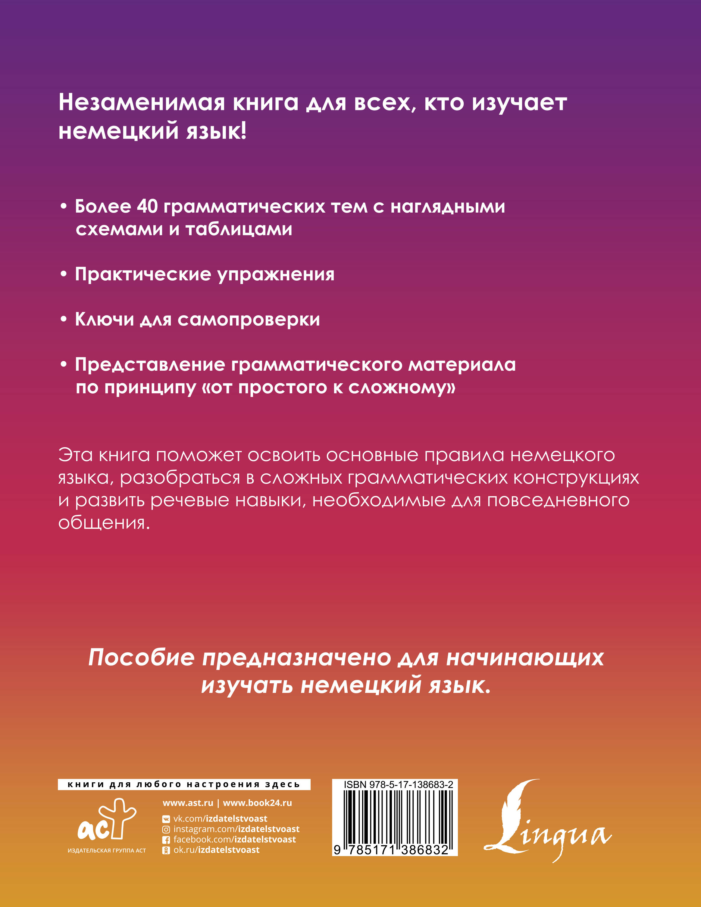 Предлагаемая книга представляет собой универсальное практическое пособие по грамматике немецкого языка.