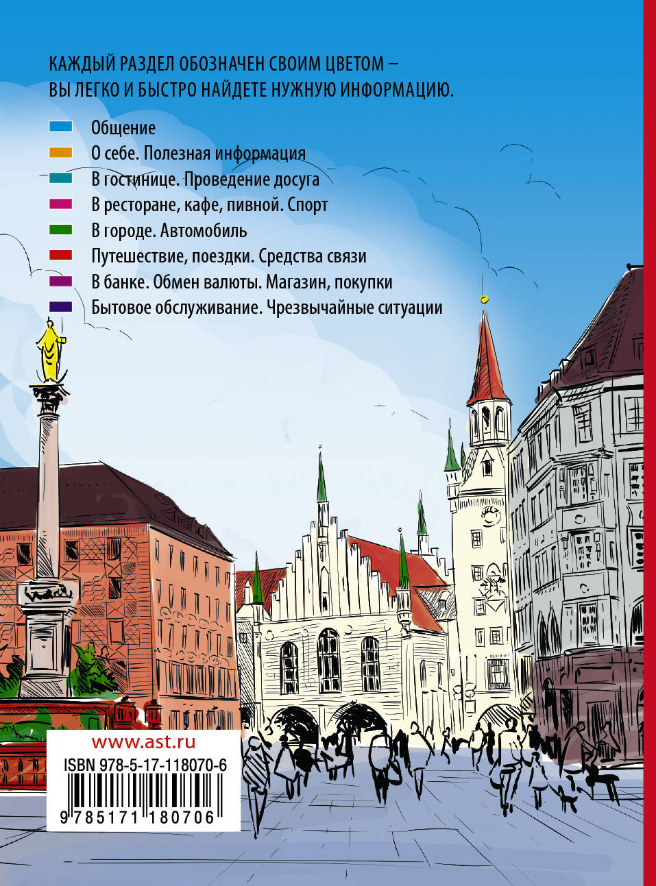 Немецкий разговорник содержит самые необходимые темы и наиболее типичные модели фраз и выражений. Немецкий текст снабжен практической транскрипцией, передающей звуки немецкого языка средствами русской графики. Каждый раздел обозначен своим цветом – вы легко и быстро найдете нужную информацию.