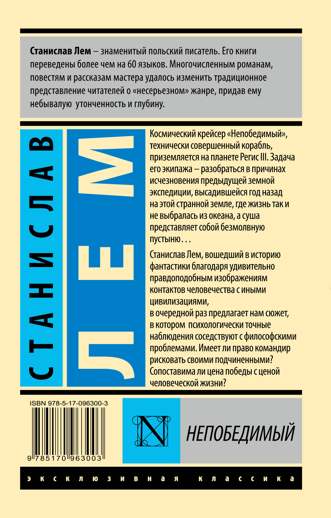 Станислав Лем, вошедший в историю фантастики благодаря удивительно правдоподобным изображениям контактов человечества с иными цивилизациями, в очередной раз предлагает нам сюжет, в котором психологически точные наблюдения соседствуют с философскими проблемами. Имеет ли право командир рисковать своими подчиненными? Сопоставима ли цена победы с ценой человеческой жизни?