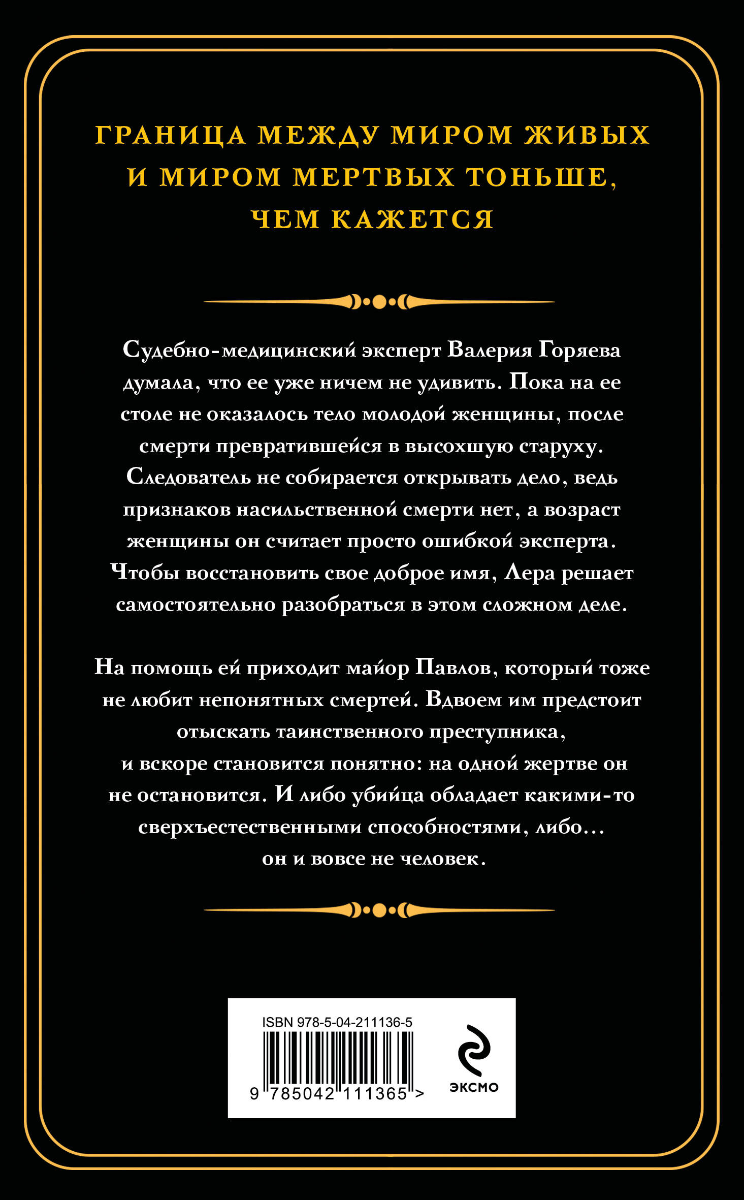 На помощь ей приходит майор Павлов, который тоже не любит непонятных смертей. Вдвоем им предстоит отыскать таинственного преступника, и вскоре становится понятно: на одной жертве он не остановится. И либо убийца обладает какими-то сверхъестественными способностями, либо… он и вовсе не человек.