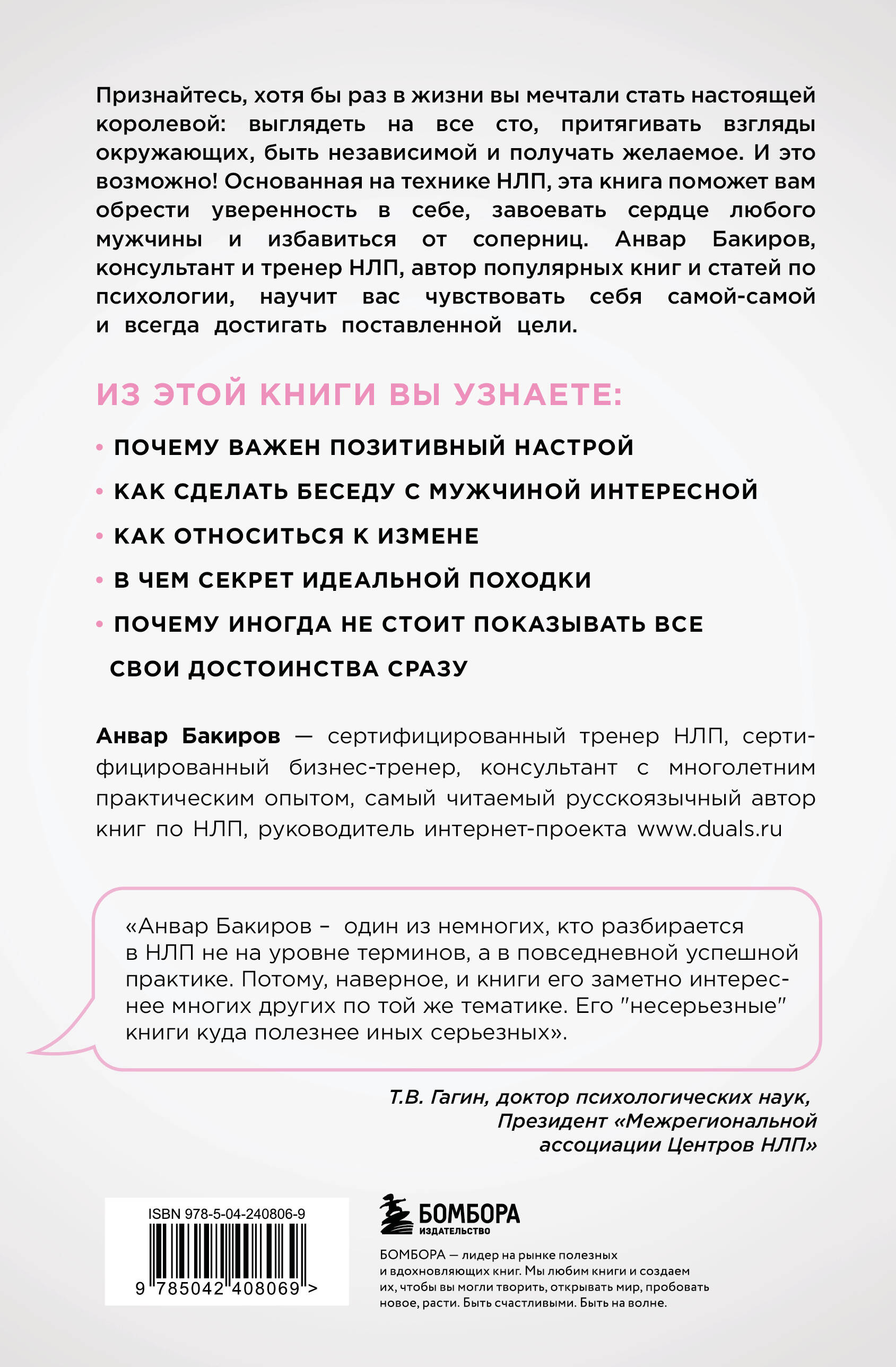 Легко, непринужденно и с юмором автор книги познакомит вас с эффективнейшими техниками современного направления в психологии - нейро-лингвистического программирования (НЛП). Это техники, позволяющие не только влиять на окружающих, получать максимум психологического комфорта в отношениях с людьми, добиваться гармонии в общении и абсолютного взаимопонимания на вербальном и невербальном уровнях, успешной реализации многих замыслов и идей как в личной, так и в профессиональной сфере, но и защищать себя от нежелательного психологического воздействия. Вы узнаете, в какие игры - честные и не очень, справедливые и иногда жестокие, веселые и интригующие, - способны играть НАСТОЯЩИЕ ЖЕНЩИНЫ.