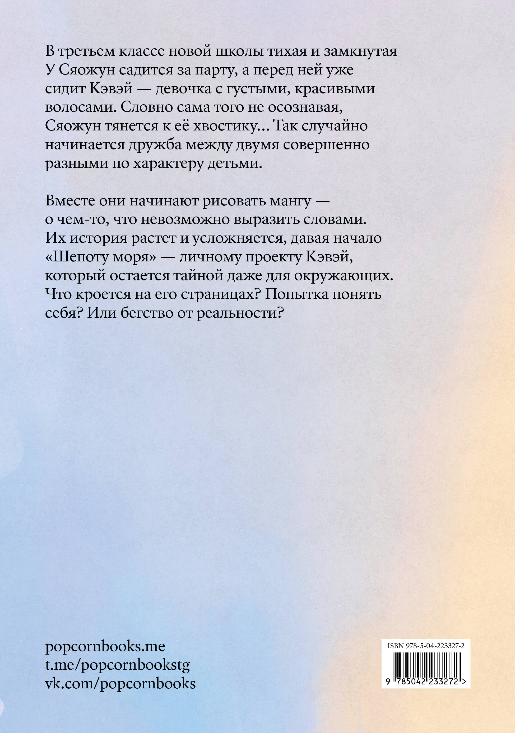 Вместе они начинают рисовать комиксы — о чем-то, что невозможно выразить словами. Их история растет и усложняется, давая начало «Шепоту моря» — личному проекту Кэвэй, который остается тайной даже для окружающих. Что кроется на его страницах? Попытка понять себя? Или бегство от реальности?