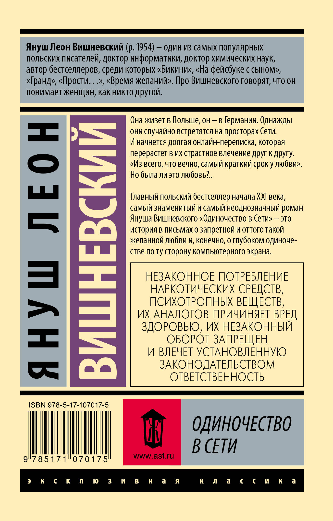 Главный польский бестселлер начала XXI века, самый знаменитый и самый неоднозначный роман Януша Вишневского "Одиночество в Сети" - это история в письмах о запретной и оттого такой желанной любви и, конечно, о глубоком одиночестве по ту сторону компьютерного экрана.