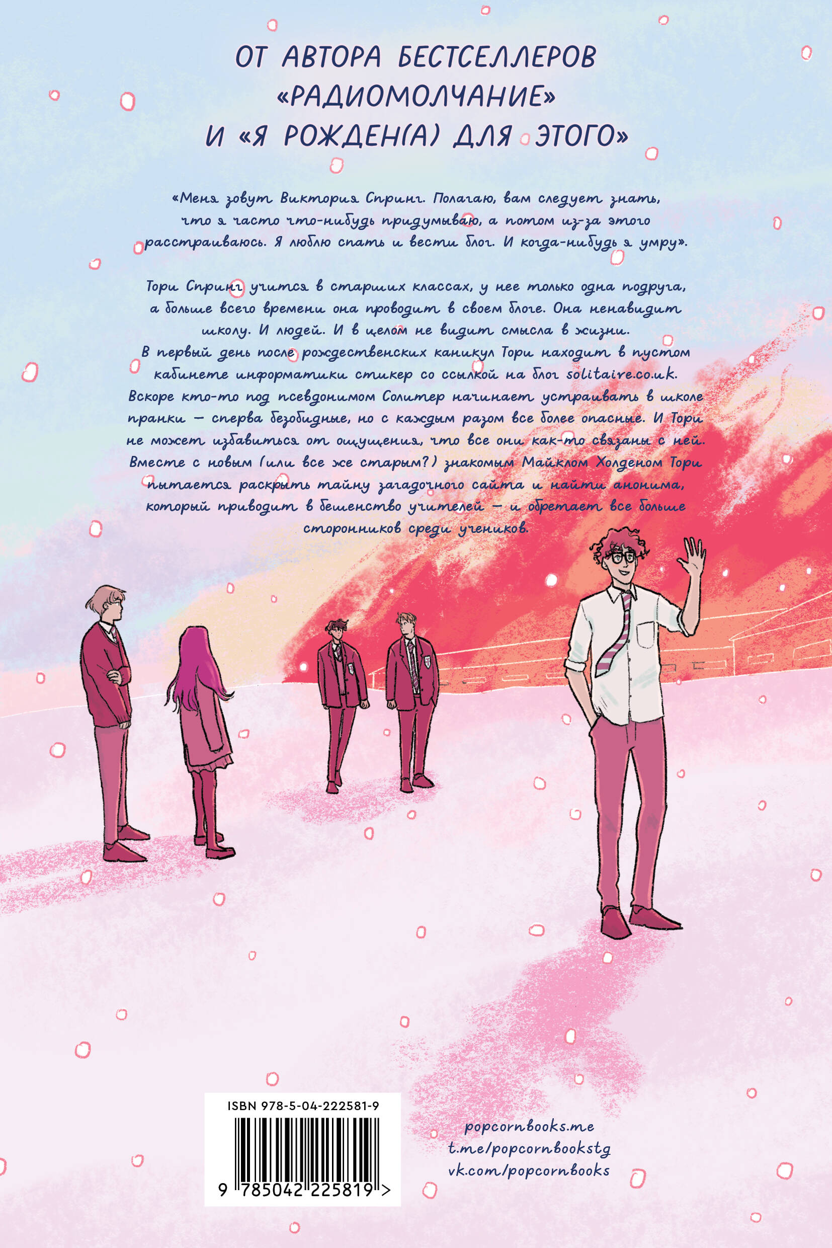 В первый день после рождественских каникул Тори находит в пустом кабинете информатики стикер со ссылкой на блог solitaire.co.uk. Вскоре кто-то под псевдонимом Солитер начинает устраивать в школе пранки — сперва безобидные, но с каждым разом все более опасные. И Тори не может избавиться от ощущения, что все они как-то связаны с ней.