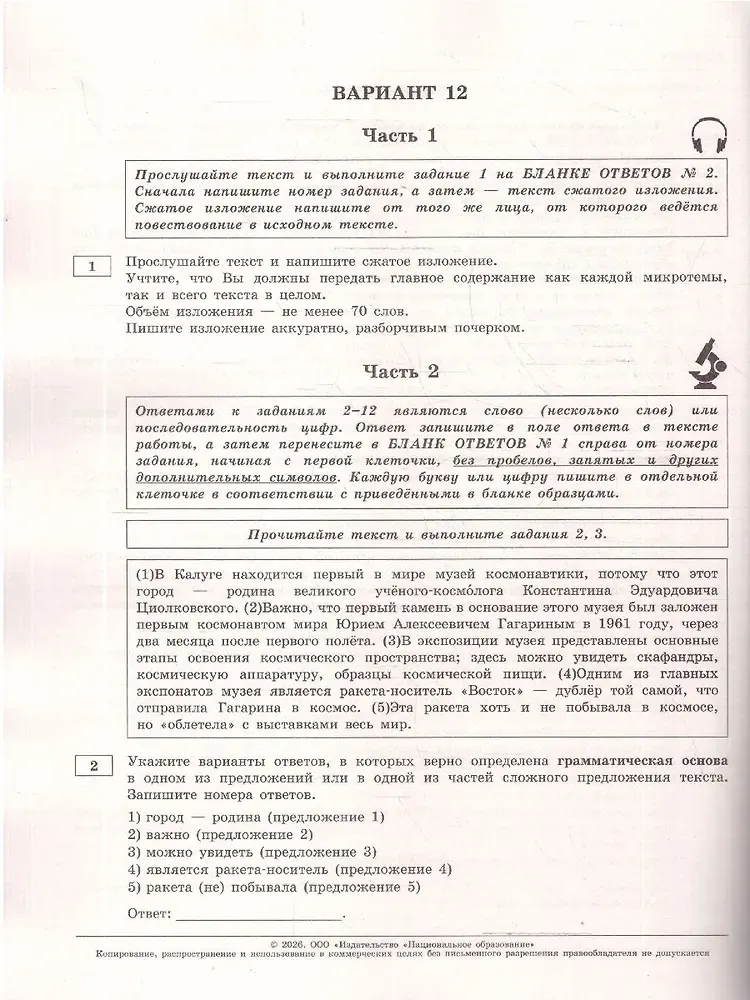 ОГЭ 2026 Русский язык Типовые экзаменационные варианты