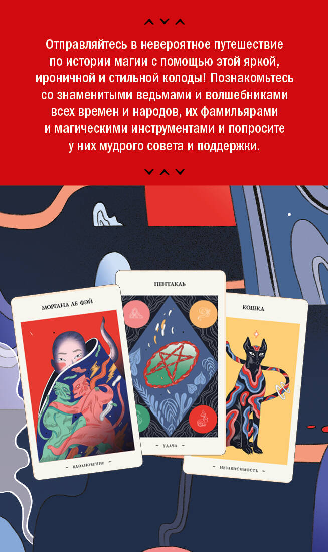 Хотите получить напутствие от самого Мерлина? А может, от Елены Петровны Блаватской, Бабы Яги или Алистера Кроули? Отправляйтесь в невероятное путешествие по истории магии с помощью этого яркого, ироничного и стильного «Оракула начинающих ведьм» Франчески Маттеорни и художницы Элизы Мацеллари! Вы познакомитесь со знаменитыми ведьмами и волшебниками всех времен и народов, животными-фамильярами и магическими инструментами и сможете получить мудрый совет и поддержку в любой ситуации.