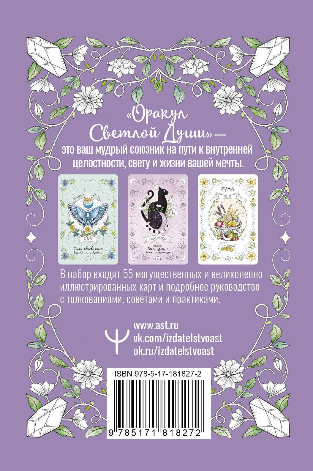 "Оракул Светлой Души" — это мудрый проводник к жизни вашей мечты. Он создан для тех, кто стремится не просто получить ответы, а осознанно трансформировать свою жизнь, раскрыть ресурсы души и проработать внутреннюю Тень. Каждая из 55 карт — это пробуждающее послание от Высших Учителей, наполненное энергией, ясностью и поддержкой на пути к подлинной свободе и власти над собственной судьбой.