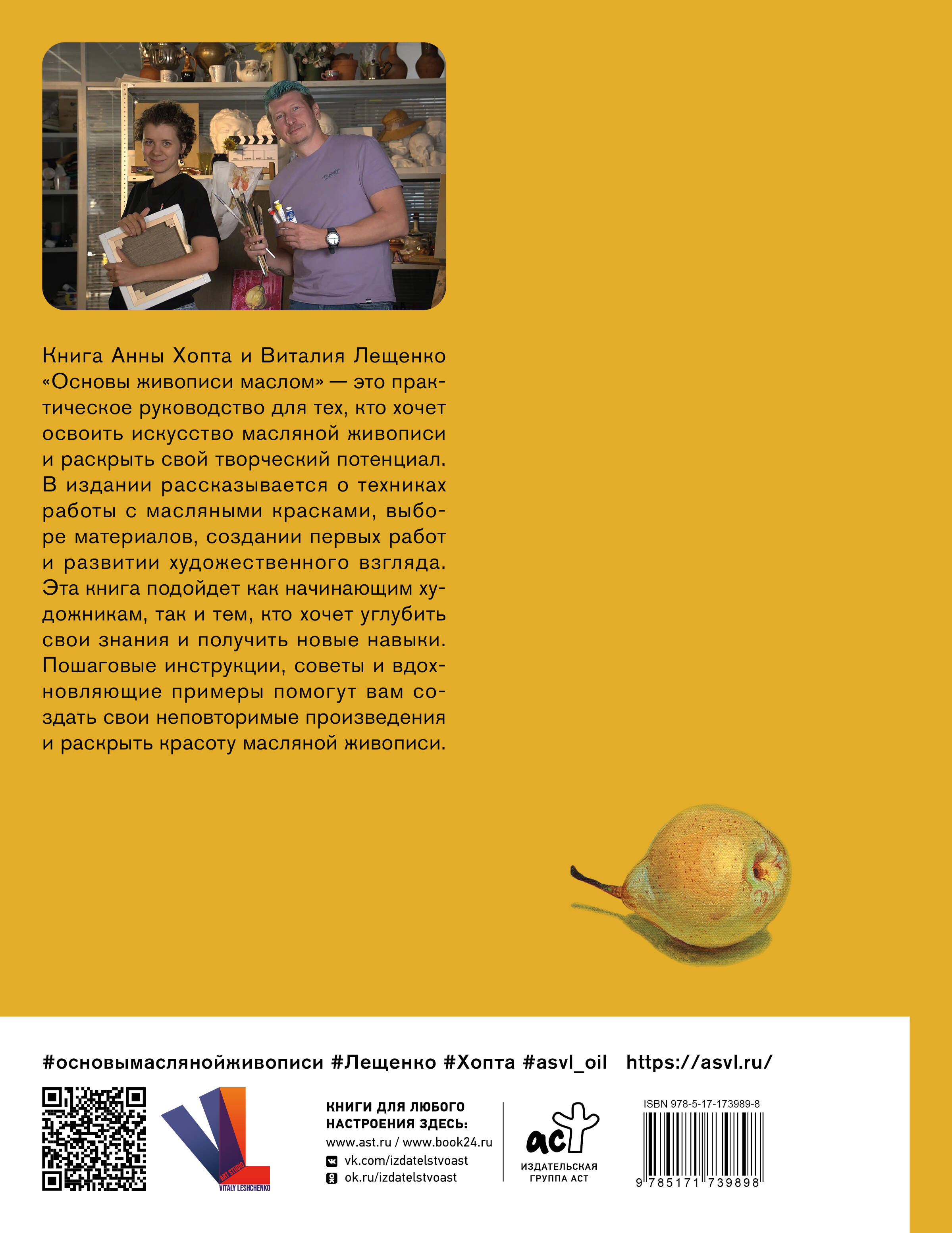 Книга Анны Хопты и Виталия Лещенко "Основы живописи маслом" — это практическое руководство для тех, кто хочет освоить искусство масляной живописи и раскрыть свой творческий потенциал. В издании рассказывается о техниках работы с масляными красками, выборе материалов, создании первых работ и развитии художественного взгляда. Эта книга подойдет как начинающим художникам, так и тем, кто хочет углубить свои знания и получить новые навыки. Пошаговые инструкции, советы и вдохновляющие примеры помогут вам создать свои неповторимые произведения и раскрыть красоту масляной живописи.