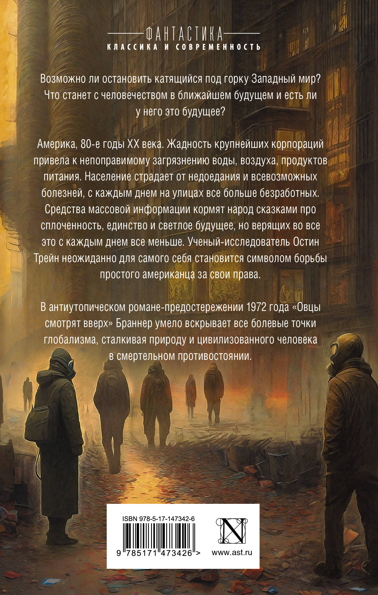 В антиутопическом романе-предостережении 1972 года "Овцы смотрят вверх" Браннер умело вскрывает все болевые точки глобализма, сталкивая природу и цивилизованного человека в смертельном противостоянии.