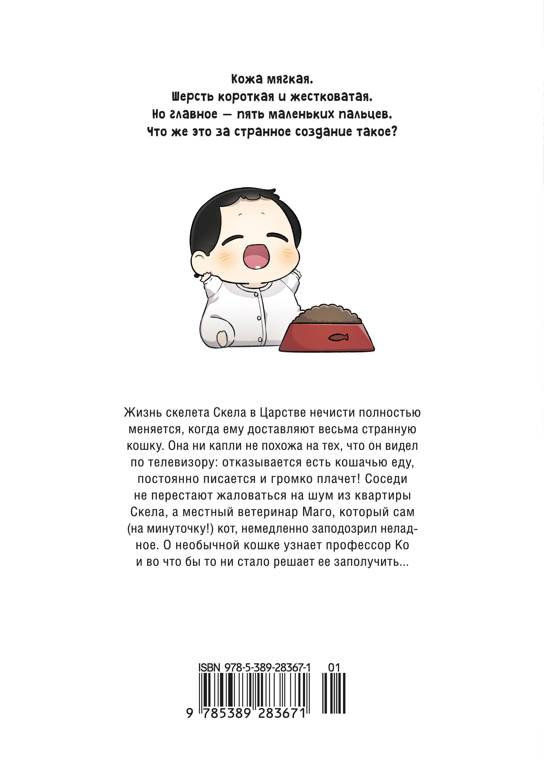 Жизнь скелета Скела в Царстве нечисти преобретает новые краски, когда ему доставляют весьма странную кошку. Она ни капли не похожа на ту, что он видел по телевизору: отказывается есть кошачью еду, постоянно писается и громко плачет! Соседи не перестают жаловаться на шум из квартиры Скела, а местный ветеринар Маго, который сам (на минуточку!) кот, немедленно заподозревает неладное. Свои опасения он высказывает профессору Ко, специализирующейся на изучении мутаций. Чрезвычайно заинтересованная необычным животным, профессор жаждет во что бы то ни стало его заполучить…
