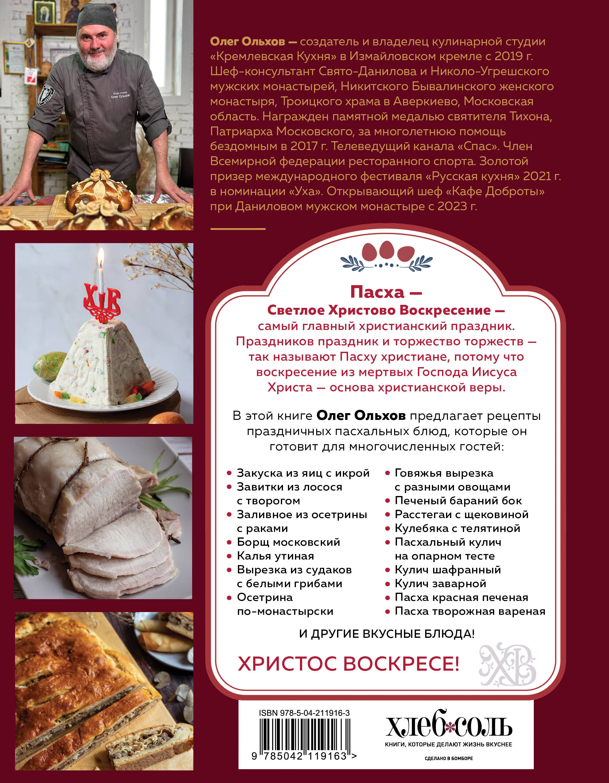 Под Пасху все люди, верующие и находящиеся на пути к вере, забывают о своих сомнениях, невзгодах, суете… и начинают готовиться к Празднику. Ведь в нем заключена прекрасная надежда на возрождение! Эта книга — замечательный подарок для тех, кто хочет узнать новые блюда для своего праздничного стола, испечь по новому рецепту кулич и приготовить заварную пасху. Покрасить с помощью луковой шелухи и листочков зелени или расписать яйца. Все рецепты с большим удовольствием предоставил нам Олег Ольхов — известный шеф-повар и руководитель мастер-классов по православной кулинарии.