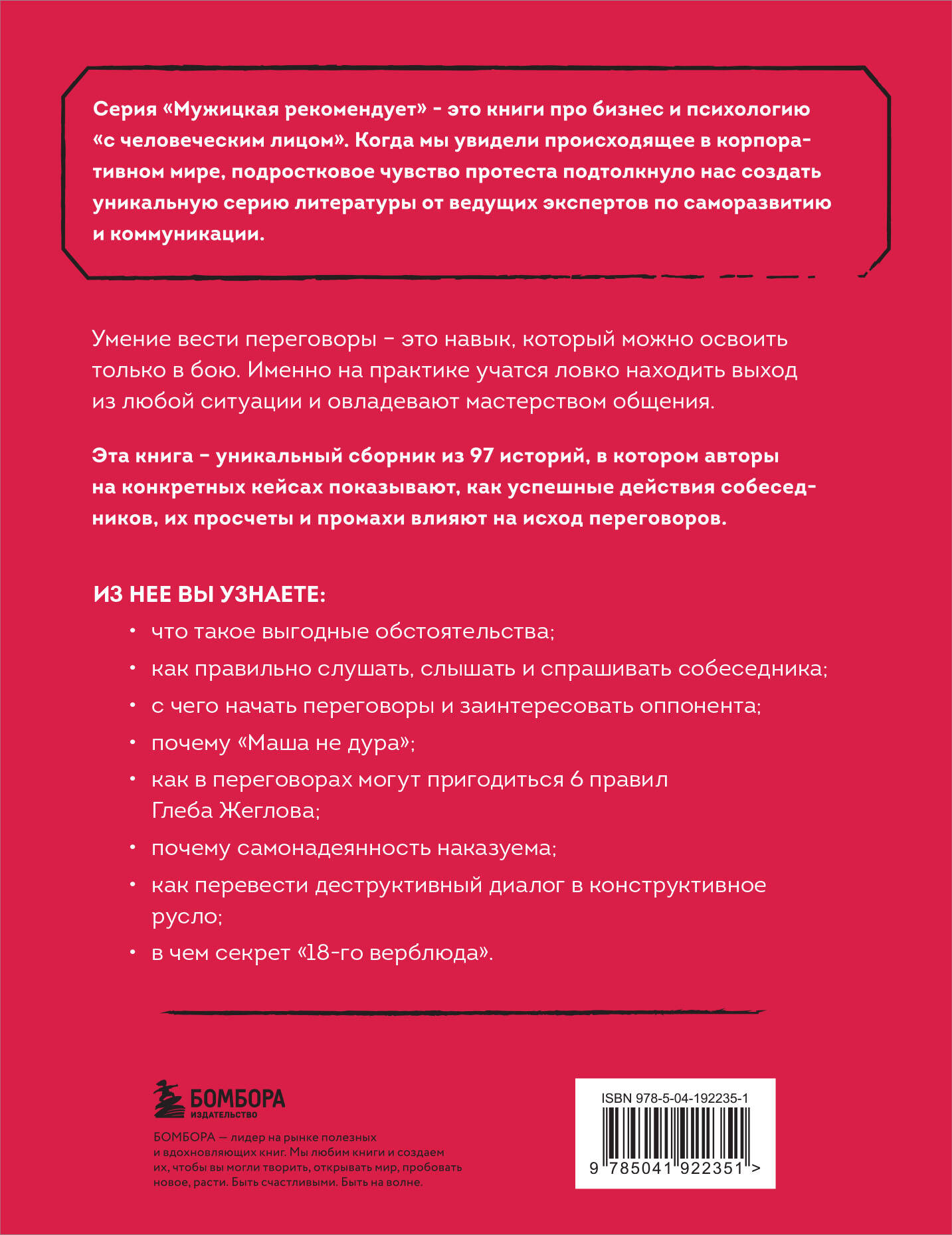 Эта книга — уникальный сборник 97 историй, в котором авторы на конкретных кейсах показывают, как успешные действия собеседников, их просчеты и промахи влияют на исход переговоров.