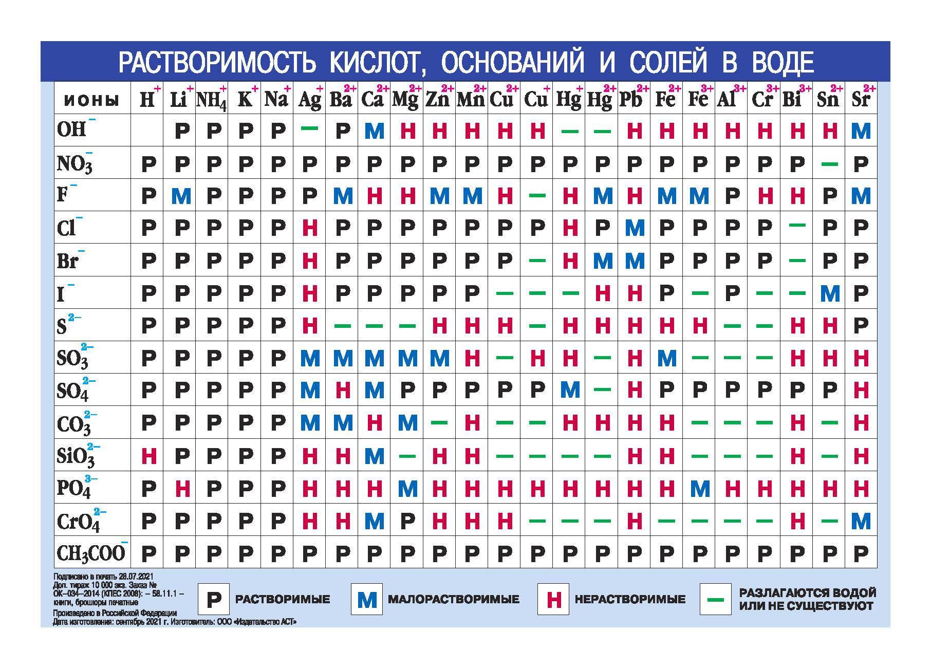 Периодическая система химических элементов Менделеева.Растворимость кислот,оснований и солей в воде
