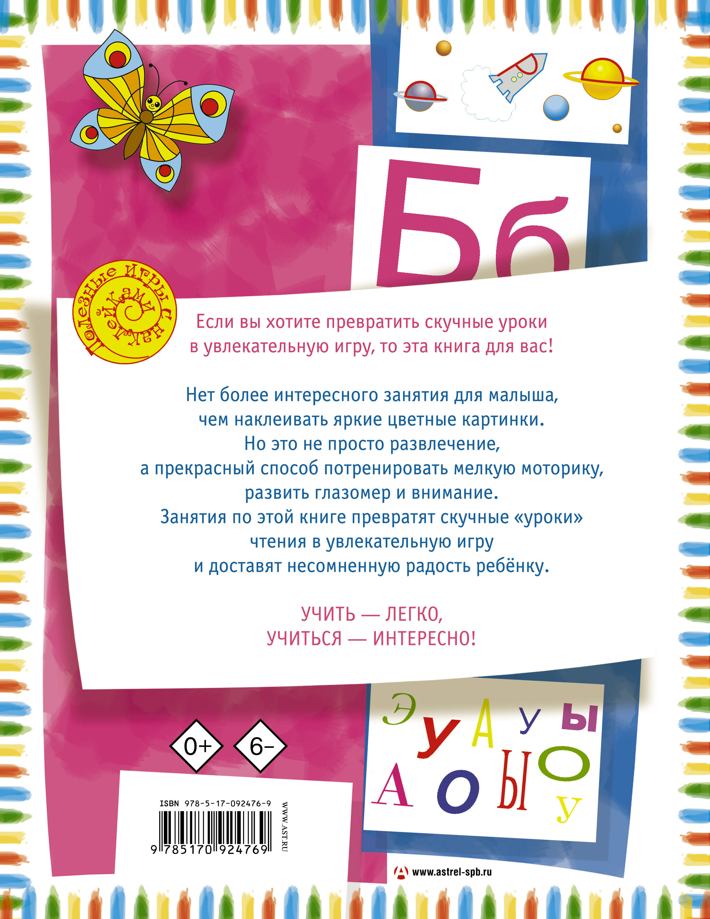 Если ваш малыш только учится читать, то эта книга для вас. Простые слова и несложные предложения, собранные в этой книге, помогут ребенку закрепить навыки чтения и превратят скучные "уроки" в занимательную игру. Ведь что может быть интереснее, чем выбирать и наклеивать яркие цветные картинки? К тому же это занятие прекрасно развивает внимание и мелкую моторику.