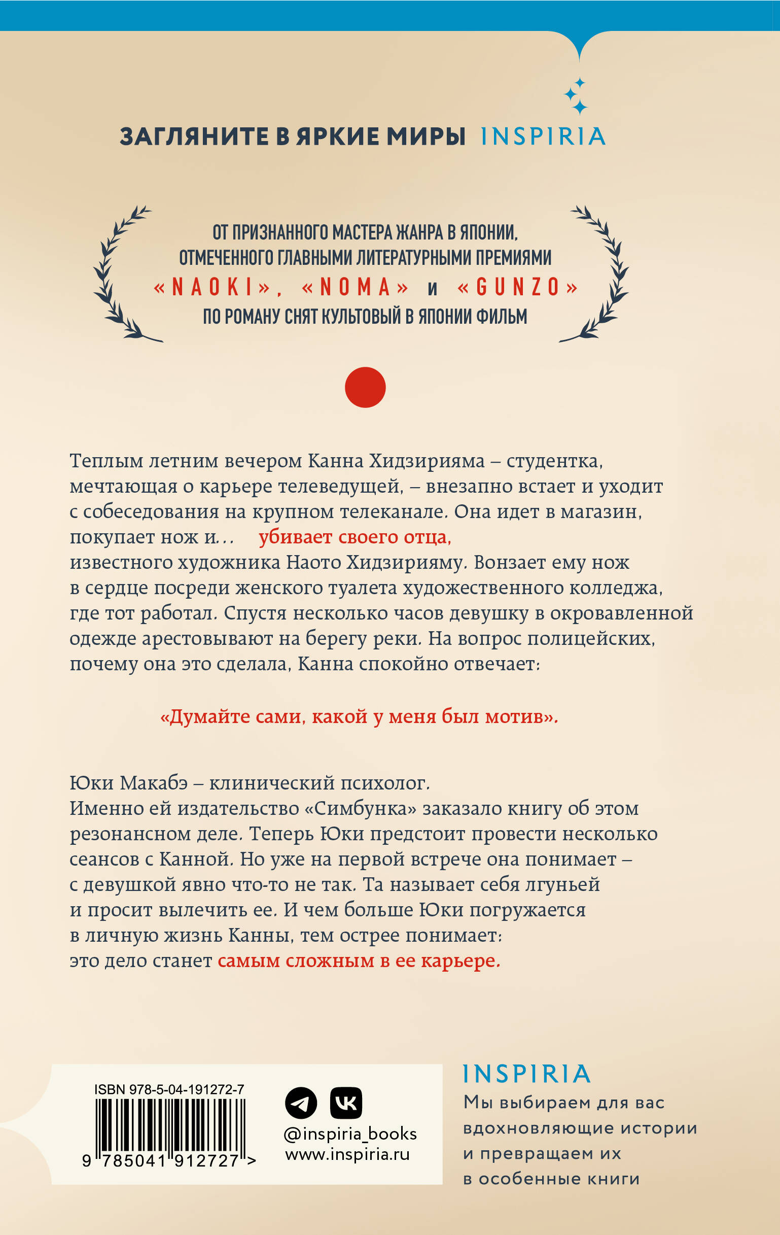 Юки Макабэ – клинический психолог. Именно ей издательство «Симбунка» заказало книгу об этом резонансном деле. Теперь Юки предстоит провести несколько сеансов с Канной. Но уже на первой встрече она видит – с девушкой явно что-то не так. Та называет себя лгуньей и просит вылечить ее. И чем больше Юки погружается в личную жизнь Канны, тем острее понимает: это дело станет самым сложным в ее карьере.