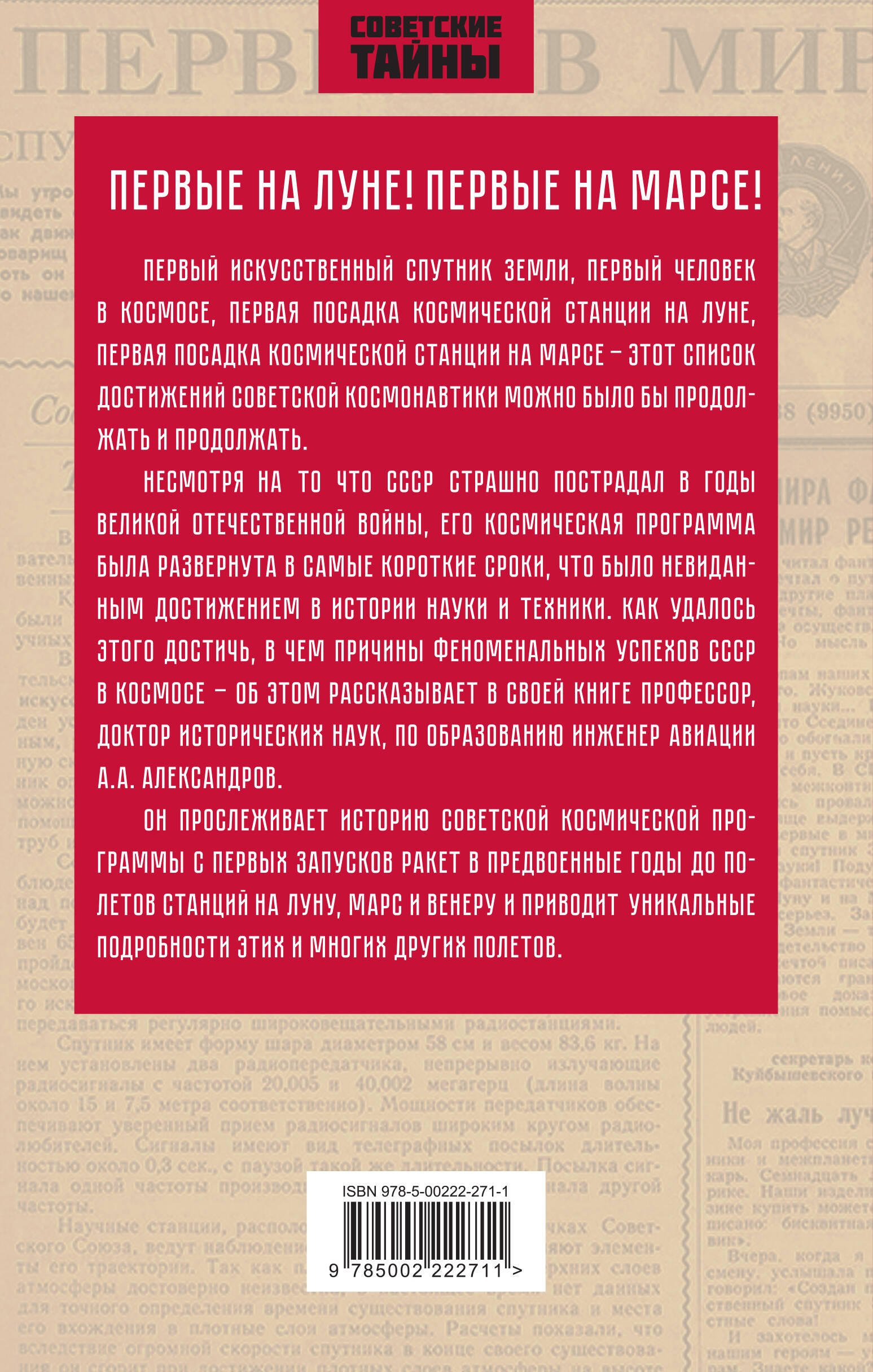 Несмотря на то что СССР страшно пострадал в годы Великой Отечественной войны, его космическая программа была развернута в самые короткие сроки, что было невиданным достижением в истории науки и техники. Как удалось этого достичь, в чем причины феноменальных успехов СССР в космосе, об этом рассказывает в своей книге профессор, доктор исторических наук, по образованию инженер авиации А.А. Александров.