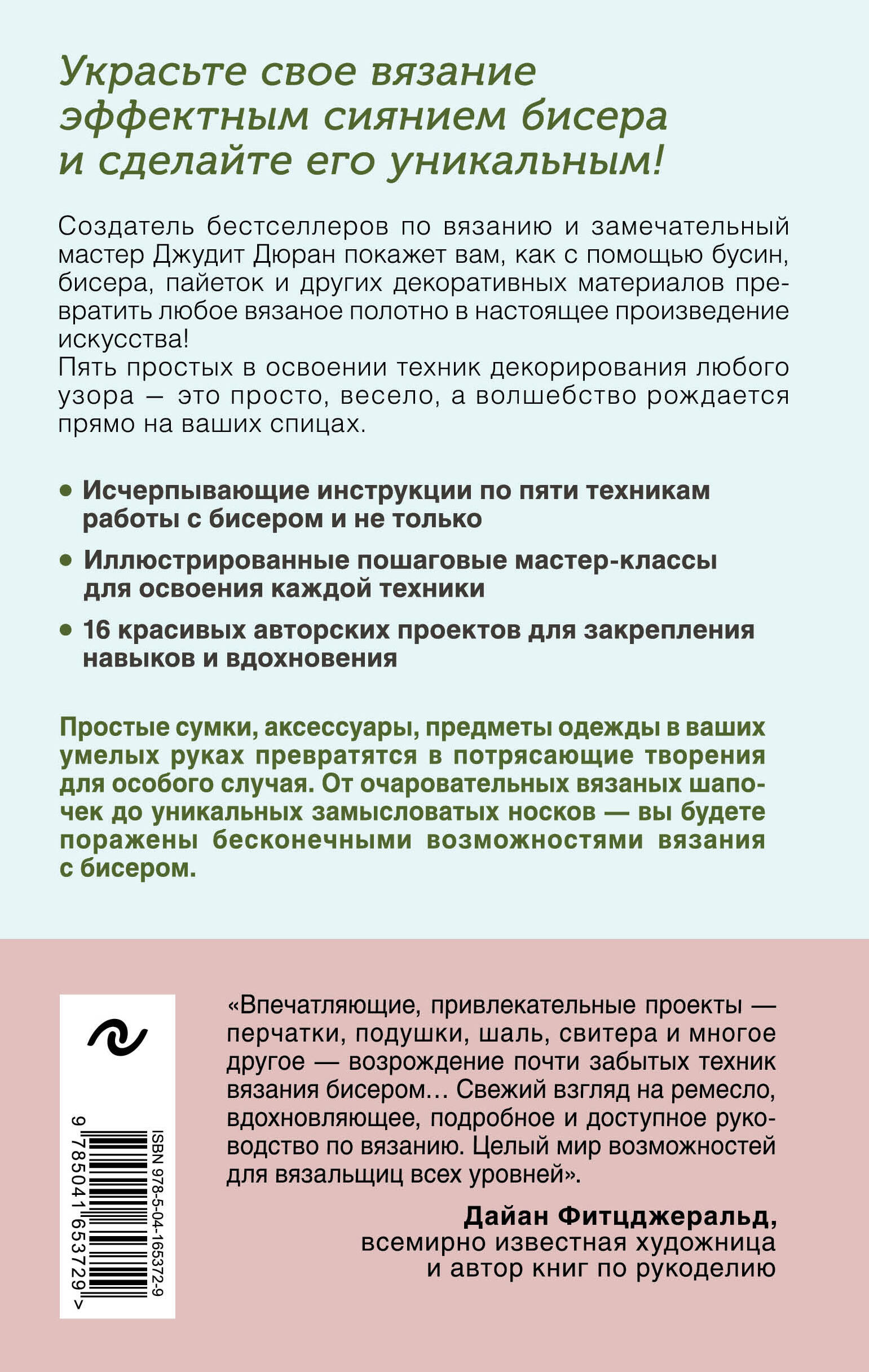 Это действительно идеальный справочник. Пять техник работы с бисером непосредственно в процессе вязания и ничего лишнего. Пошаговые инструкции, снабженные яркими иллюстрациями, роскошные проекты для примера использования техник, исчерпывающий обзор бисера и других материалов, перечень необходимых инструментов. Эта книга будет у вас под рукой, чтобы прийти на помощь в момент затруднений, если вы опытный мастер, или научить с нуля, если вы новичок. Кратко, четко, красиво!
