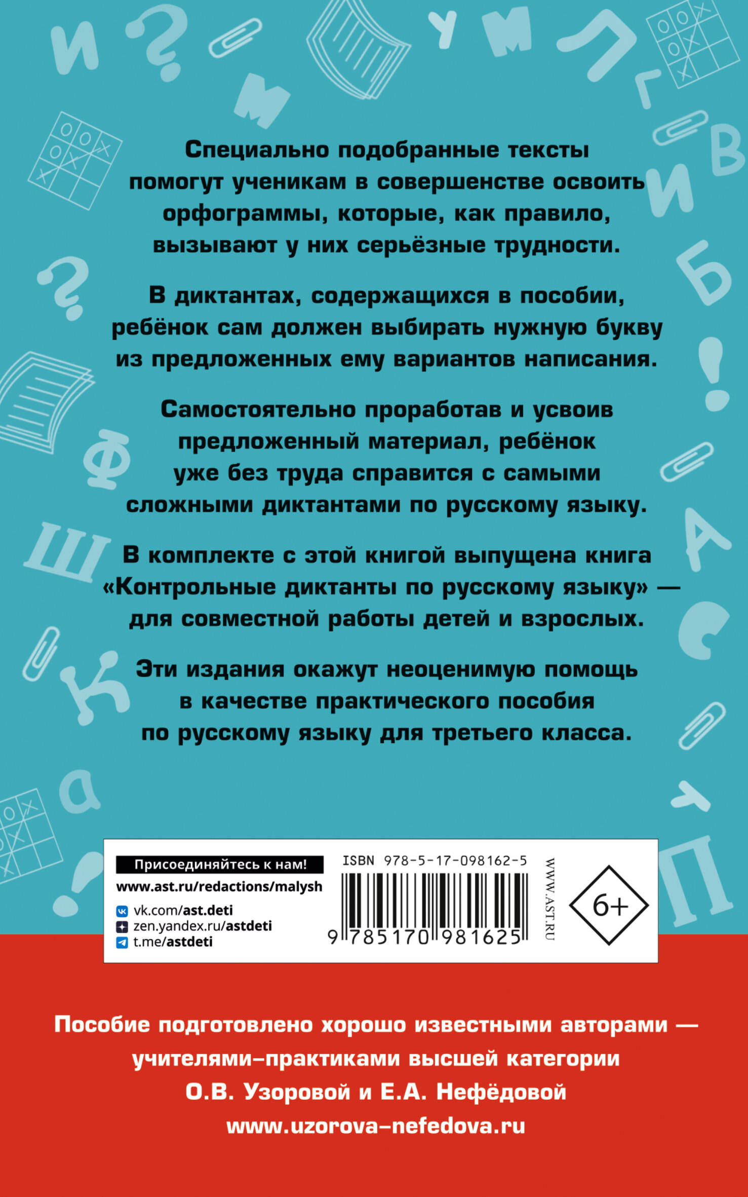 Специально подобранные тексты помогут ученикам в совершенстве освоить орфограммы, которые, как правило, вызывают у них серьезные трудности. В диктантах, содержащихся в пособии, ребенок сам должен выбирать нужную букву из предложенных ему вариантов написания. Самостоятельно проработав и усвоив предложенный материал, ребенок уже без труда справится с самыми сложными диктантами по русскому языку. В комплекте с этой книгой выпущена другая - для совместной работы детей и взрослых.