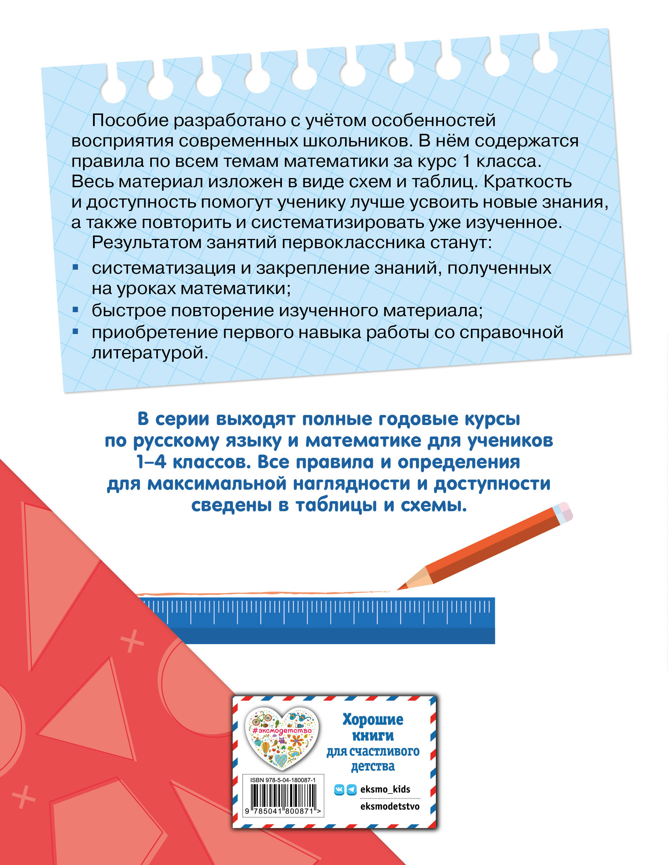 Справочники для учеников начальной школы должны быть краткими и понятными. В данном пособии предельно доступно, в виде таблиц и схем, изложен весь курс математики за 1 класс. Такая подача материала делает процесс поиска и запоминания информации максимально быстрым и лёгким. Современное и удобное в использовании пособие полностью соответствует всем требованиям ФГОС начального общего образования.