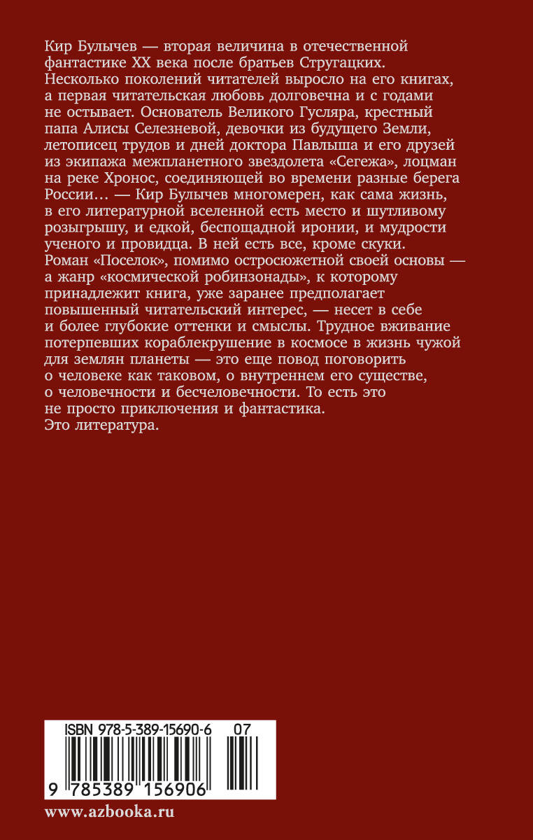 Роман "Поселок", кроме остросюжетной своей основы — а жанр "космической робинзонады", к которому принадлежит книга, уже заранее предполагает повышенный читательский интерес, — несет в себе и более глубокие оттенки и смыслы. Трудное вживание потерпевших кораблекрушение в космосе в жизнь чужой для землян планеты — это еще повод поговорить о человеке как таковом, о внутреннем его существе, о человечности и бесчеловечности. То есть это не просто приключения и фантастика. Это литература.