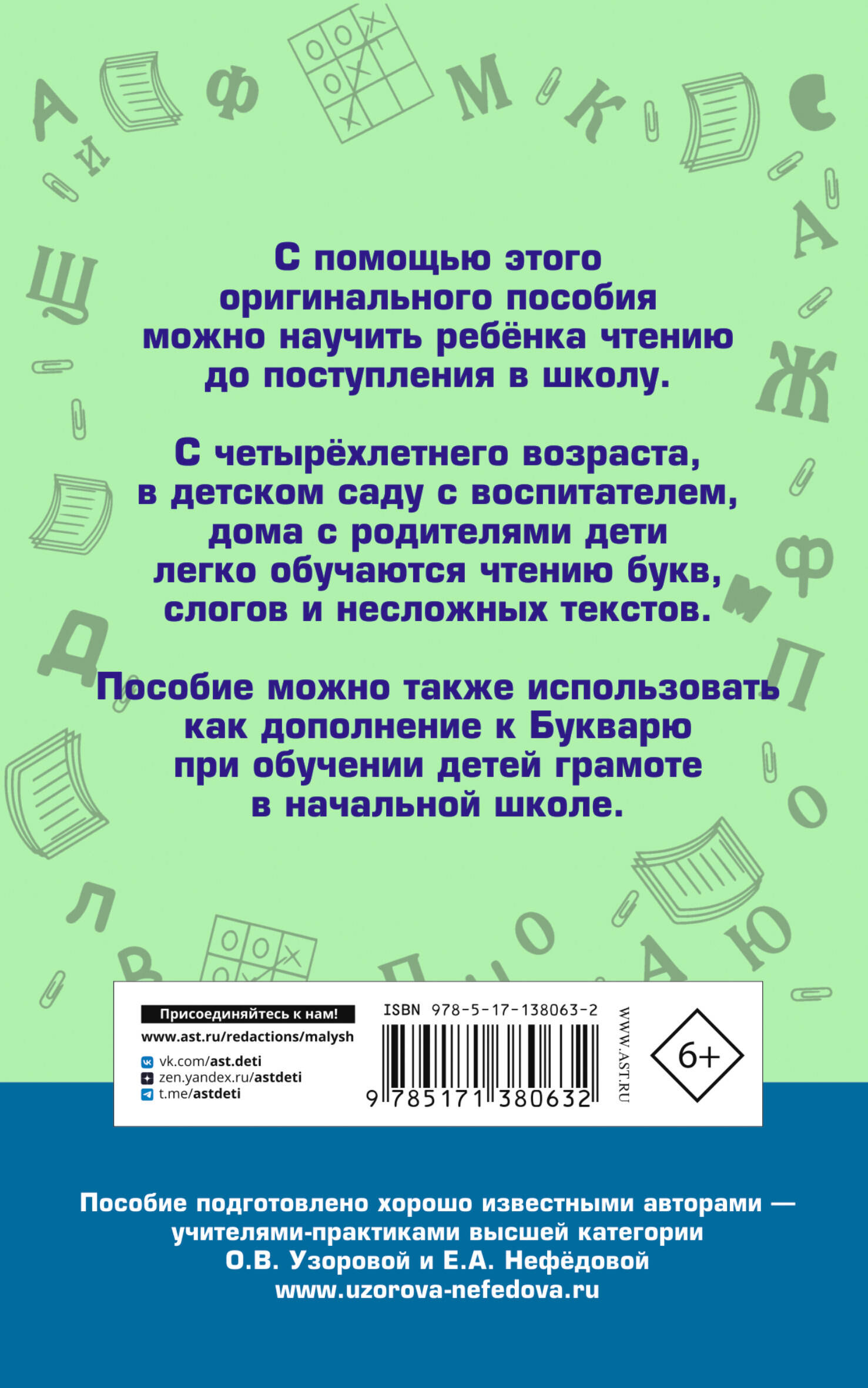 В данном пособии представлен материал для обучения чтению детей от 4 до 7 лет.