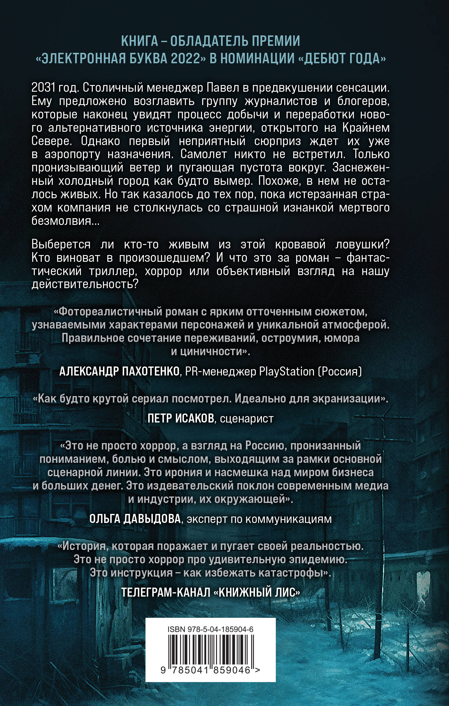 2031 год. Столичный менеджер Павел в предвкушении сенсации. Ему предложено возглавить группу журналистов и блогеров, которые наконец увидят процесс добычи и переработки нового альтернативного источника энергии, открытого на Крайнем Севере. Однако первый неприятный сюрприз ждет их уже в аэропорту назначения. Самолет никто не встретил. Только пронизывающий ветер и пугающая пустота вокруг. Заснеженный холодный город как будто вымер. Похоже, в нем не осталось живых. Но так казалось до тех пор, пока истерзанная страхом компания не столкнулась со страшной изнанкой мертвого безмолвия…