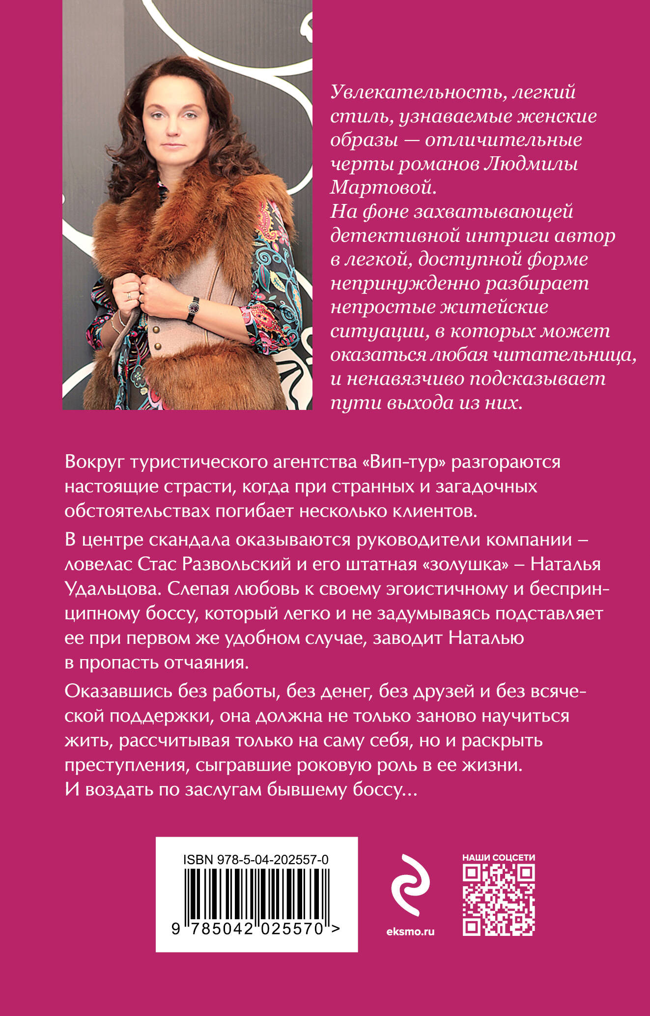Людмила Мартова — мастер увлекательной детективной мелодрамы, автор захватывающих остросюжетных историй. Их отличают закрученная детективная интрига, лихой финал с неожиданной развязкой и, конечно же, яркая любовная линия. Героини романов Людмилы Мартовой — современные молодые женщины, которые точно знают, чего хотят от жизни.