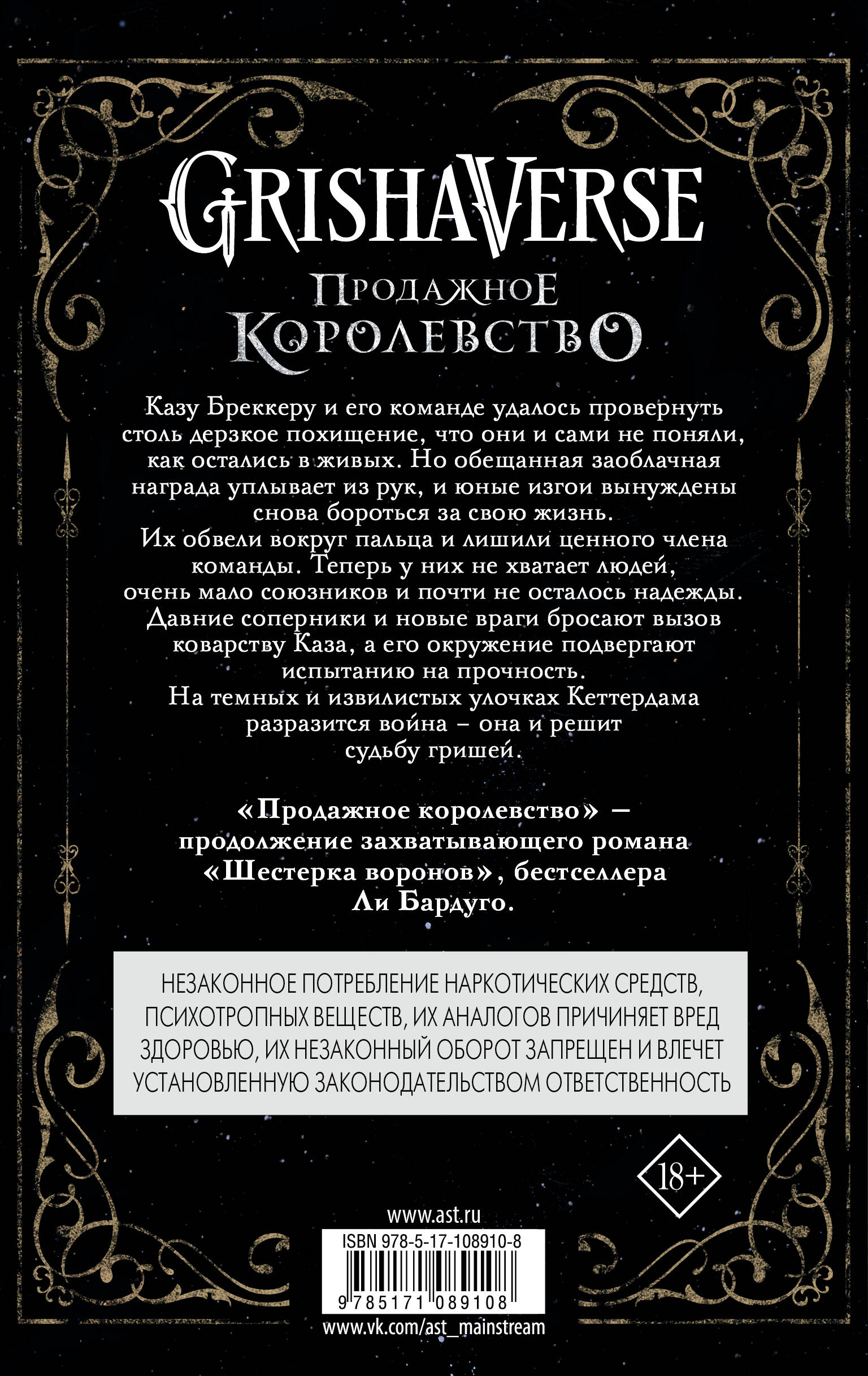 Шестеро против всех. Продолжение нашумевшего бестселлера «Шестерка воронов». Яркое, самобытное фэнтези о шестерых отчаянных юных авантюристах. Книги Ли Бардуго - красочное, остросюжетное фэнтези - изданы тиражом более миллиона экземпляров и возглавили рейтинги New York Times. Что делать, если весь мир объявил тебе войну? Именно в такой непростой ситуации оказался авантюрист и ловкий мошенник Каз Бреккер. Криминальные боссы не простили постоянного вмешательства в их темные дела, а облеченные властью правители развернули охоту, ведь к нему в руки попал секрет, способный навсегда изменить расстановку сил в мире. Здесь могут помочь только хитрость, смелость и верная команда. Правда, команда у Каза непростая: его подельники способны в любой момент перебить друг друга. Бесстрашный охотник на ведьм и прекрасная чародейка, в которую он влюблен, превосходный стрелок, скрывающий свои магические способности, и отпрыск богатой семьи, сбежавший от властного отца, а также изящная девушка с уникальными талантами - запретная мечта самого Каза. У каждого из них свои сильные и слабые стороны и свои цели. Кто-то мечтает сделать мир лучше. Кто-то хочет разбогатеть. А у кого-то в крови сидит тяга к разрушению.