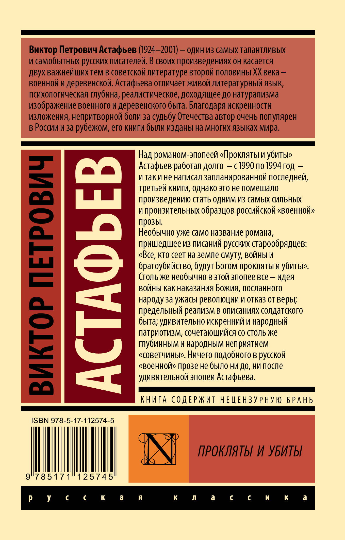 Над романом-эпопеей "Прокляты и убиты" Астафьев работал долго – с 1990 по 1994 гг – и так и не написал запланированной последней, третьей книги, однако это не помешало произведению стать одним из самых сильных и пронзительных образцов российской "военной" прозы.