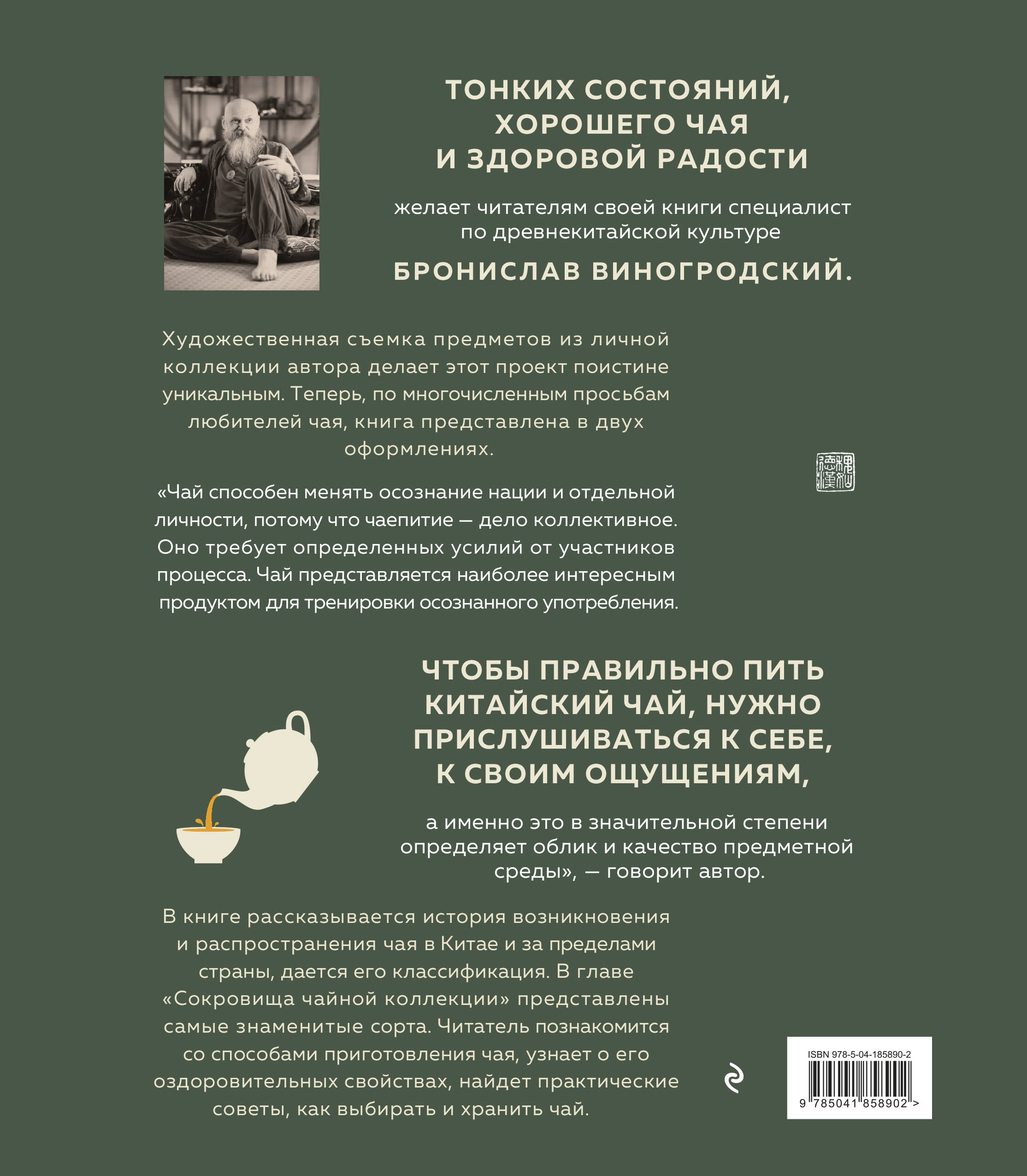 В прекрасно иллюстрированной книге известного китаеведа и переводчика Бронислава Виногродского рассказывается история возникновения и распространения чая в Китае и за пределами страны, дается его классификация.