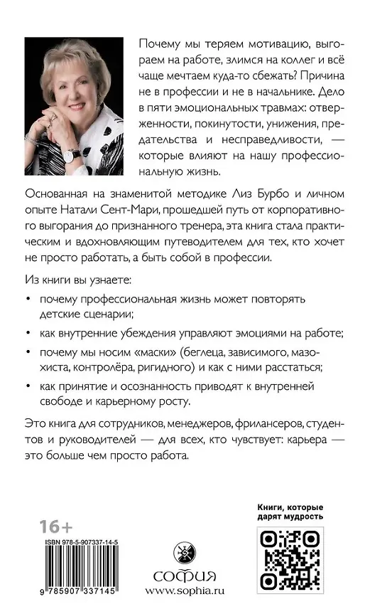 Основанная на знаменитой методике Лиз Бурбо и личном опыте Натали Сент-Мари — от корпоративного выгорания до работы с людьми как признанный тренер, — эта книга стала практическим и вдохновляющим путеводителем для тех, кто хочет не просто работать, а быть собой в профессии.