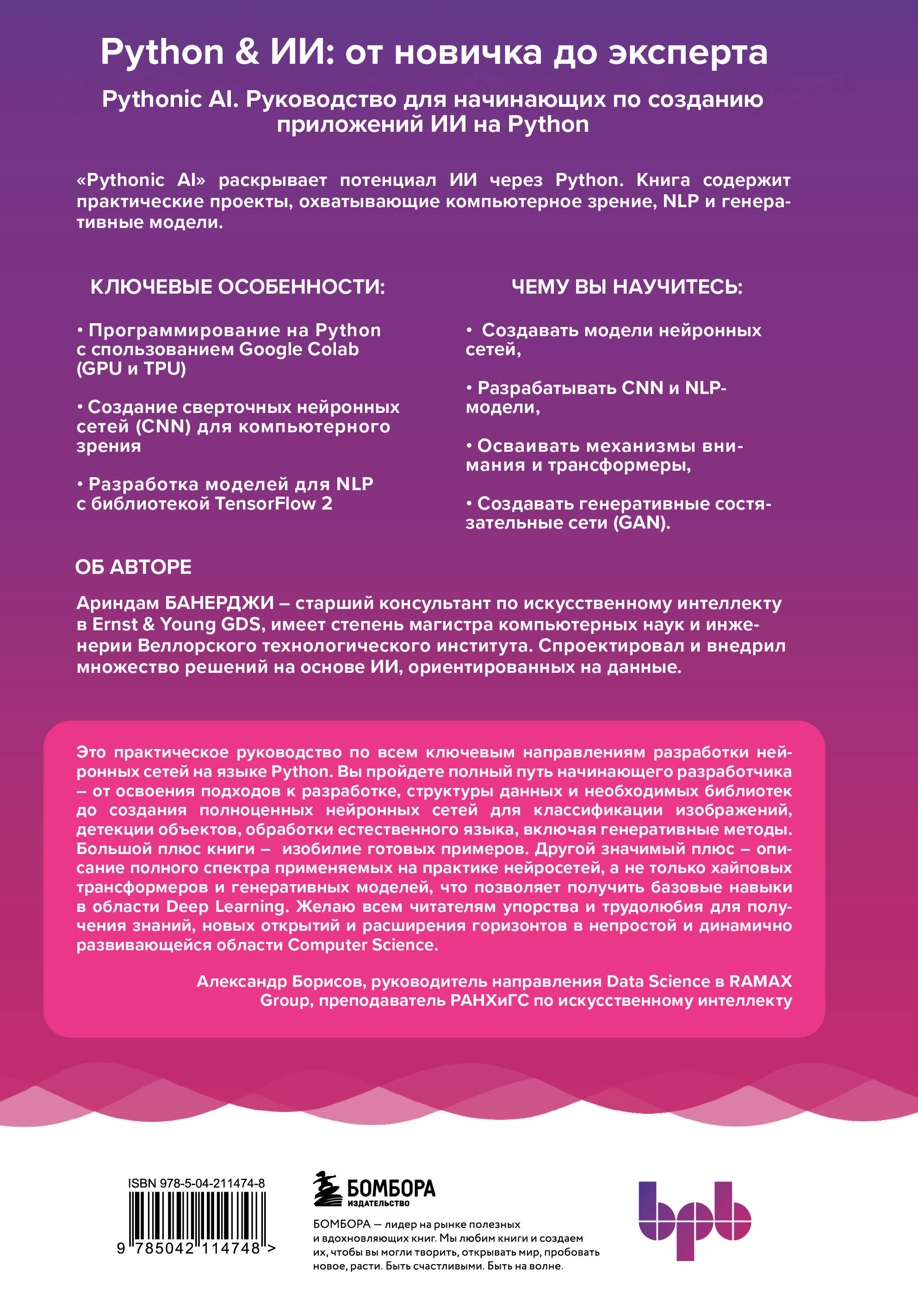 От новичка до эксперта в разработке ИИ-приложений на Python! Это идеальное руководство для погружения в мир искусственного интеллекта с применением одного из самых популярных языков программирования. Эта книга предлагает практические проекты, которые научат применять современные методы ИИ. Приложения ИИ станут реальностью быстрее, чем этого можно ожидать. Независимо от уровня подготовки, «Pythonic AI» обеспечит знаниями и инструментами, необходимыми для успешного старта и развития в сфере разработки ИИ на Python.