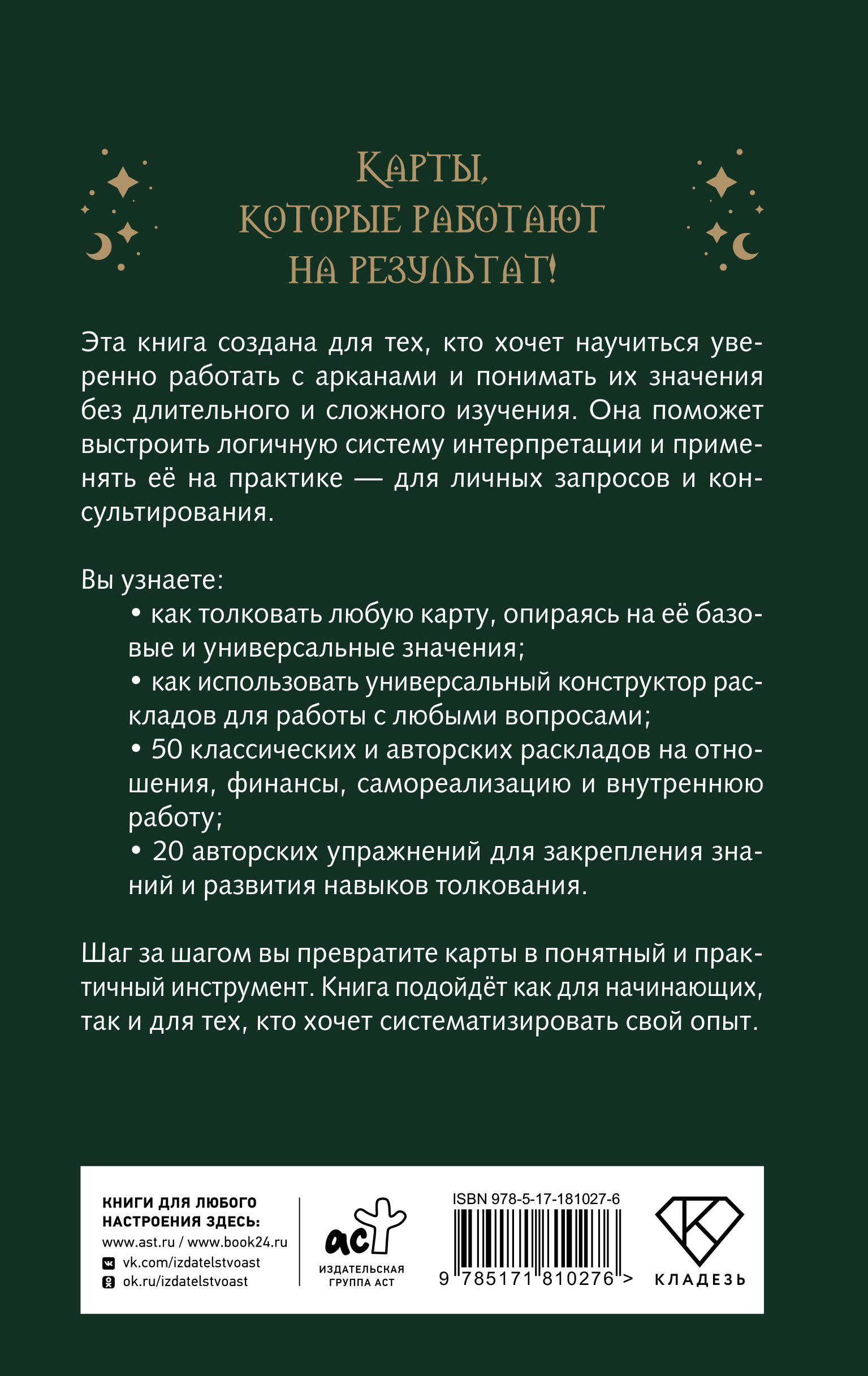 Эта книга создана для тех, кто хочет научиться уверенно работать с арканами и понимать их значения без длительного и сложного изучения. Она поможет выстроить логичную систему интерпретации и применять её на практике — для личных запросов и консультирования.