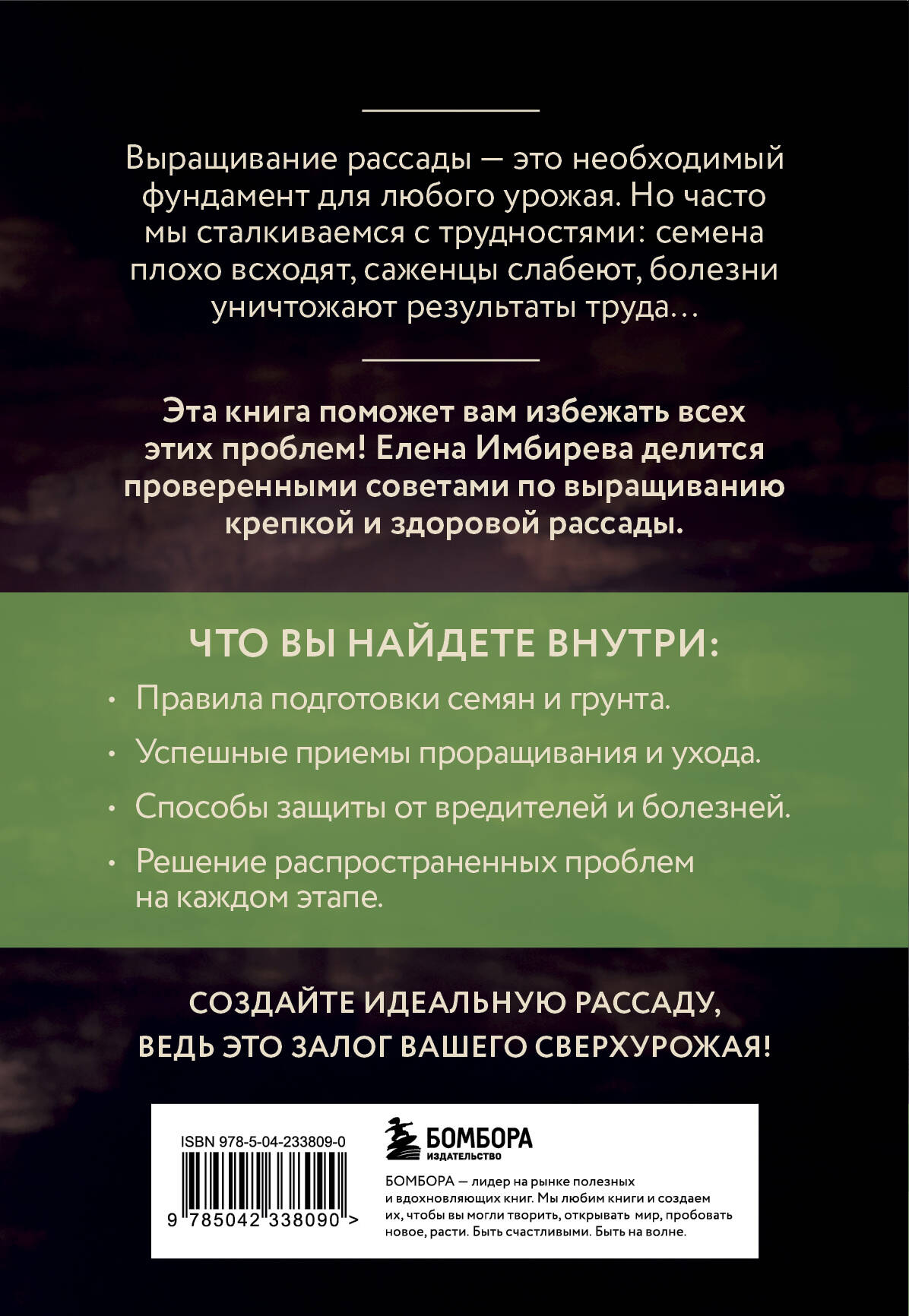 Эта книга станет вашим незаменимым помощником! Елена Имбирева собрала в ней все необходимые советы и практические рекомендации, чтобы вы смогли вырастить крепкую и здоровую рассаду без лишних хлопот.