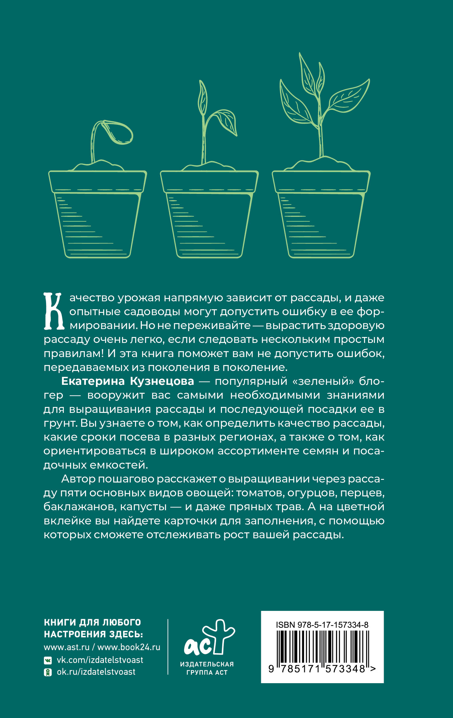 Готовь сани летом, а рассаду – зимой. Настоящие огородники знают, что готовиться к дачному сезону нужно заранее. Чтобы подготовка прошла проще, а урожай получился богаче, готовьтесь вместе с новой книгой профессионального биолога, садовода с 10-летним опытом, и популярного блогера Екатерины Кузнецовой «Рассадоводство».Екатерина подробно ответит на самые «наболевшие» вопросы дачников о том, как правильно выращивать рассаду: когда пора сеять, какой грунт выбрать, какие горшки удобнее, какие семена купить... Вместе с книгой Екатерины вы разберетесь в таких нюансах «рассадоводства» как: выбор качественного грунта и семян, дополнительное освещение, температурный режим, замачивание и пересадка, которые помогут получить здоровую и крепкую рассаду к тому моменту, как придет пора высаживать ее в грунт. В книге вы узнаете о выращивании через рассаду пяти видов овощей: томатов, огурцов, перцев, баклажанов и капусты, а также о выращивании пряных трав. Откройте секреты выращивания здоровой и крепкой рассады вместе с книгой Екатерины Кузнецовой «Рассадоводство. Первые шаги к здоровому урожаю».