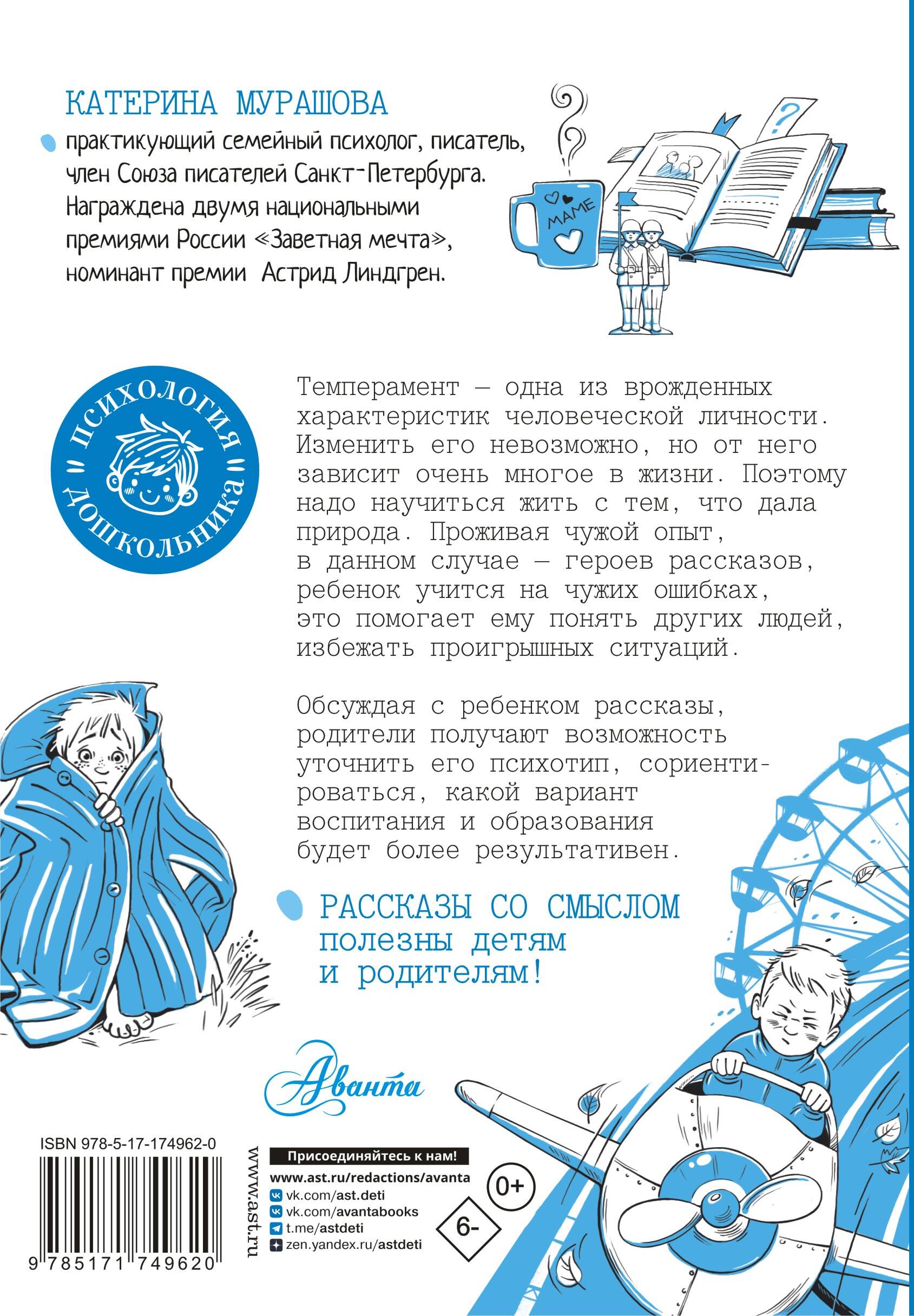 Терапевтические рассказы известного психолога Катерины Мурашовой обращены к детям дошкольного возраста и их заботливым родителям. Расширить представление о мире и людях, о разности подходов к решению проблем, примерить на себя роль человека с другим характером, проговорить с родителями проблемные опасные ситуации – для детей. Определить тип темперамента ребенка, помочь правильно подобрать приемы воспитания, наладить общение, выстроить отношения с детьми в проблемных ситуациях – для родителей.