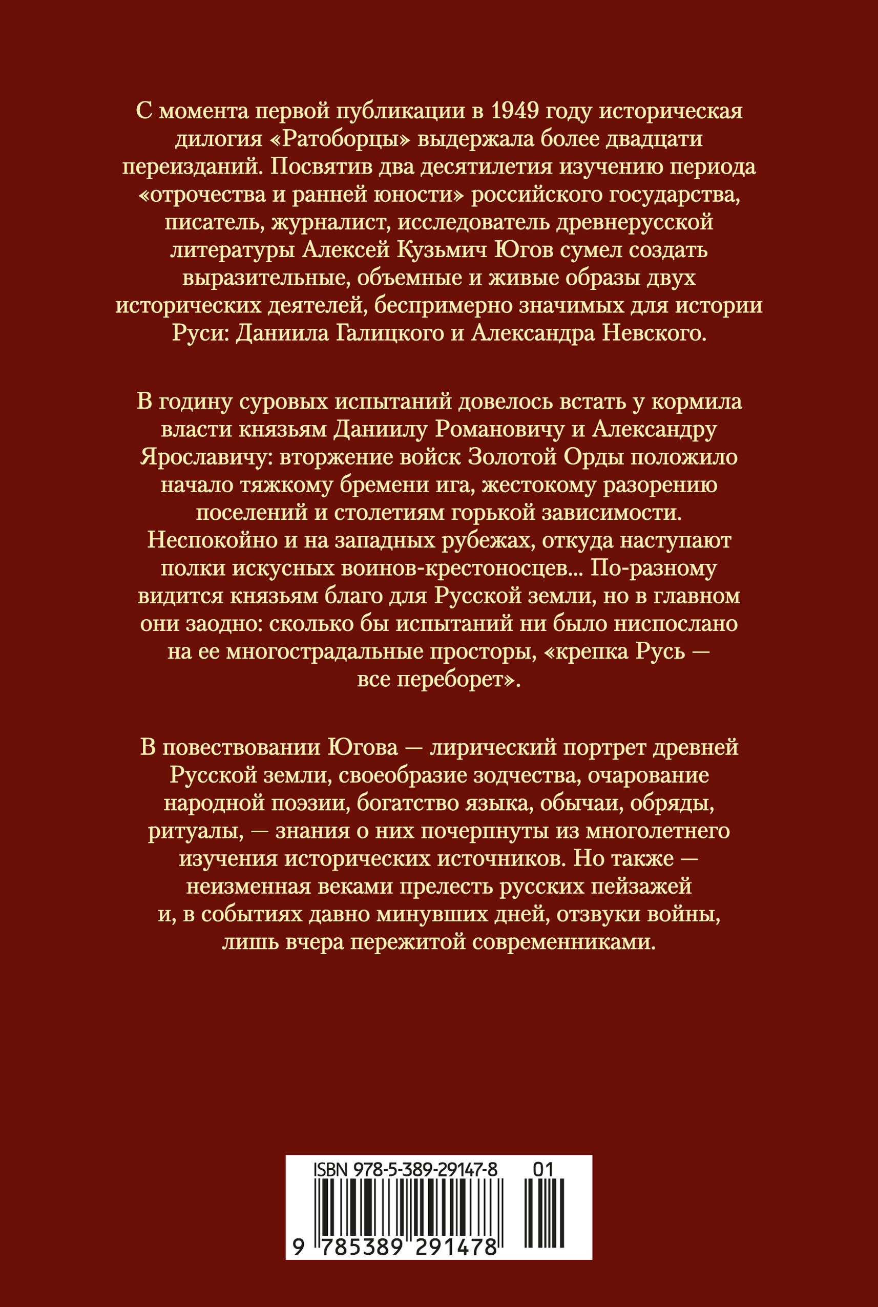 С момента первой публикации в 1949 году историческая дилогия «Ратоборцы» выдержала более двадцати переизданий. Посвятив два десятилетия изучению периода «отрочества и ранней юности» российского государства автор дилогии — писатель, журналист, исследователь древнерусской литературы Алексей Кузьмич Югов — сумел создать выразительные, объемные и живые образы двух исторических деятелей, беспримерно значимых для истории Руси: Даниила Галицкого и Александра Невского.