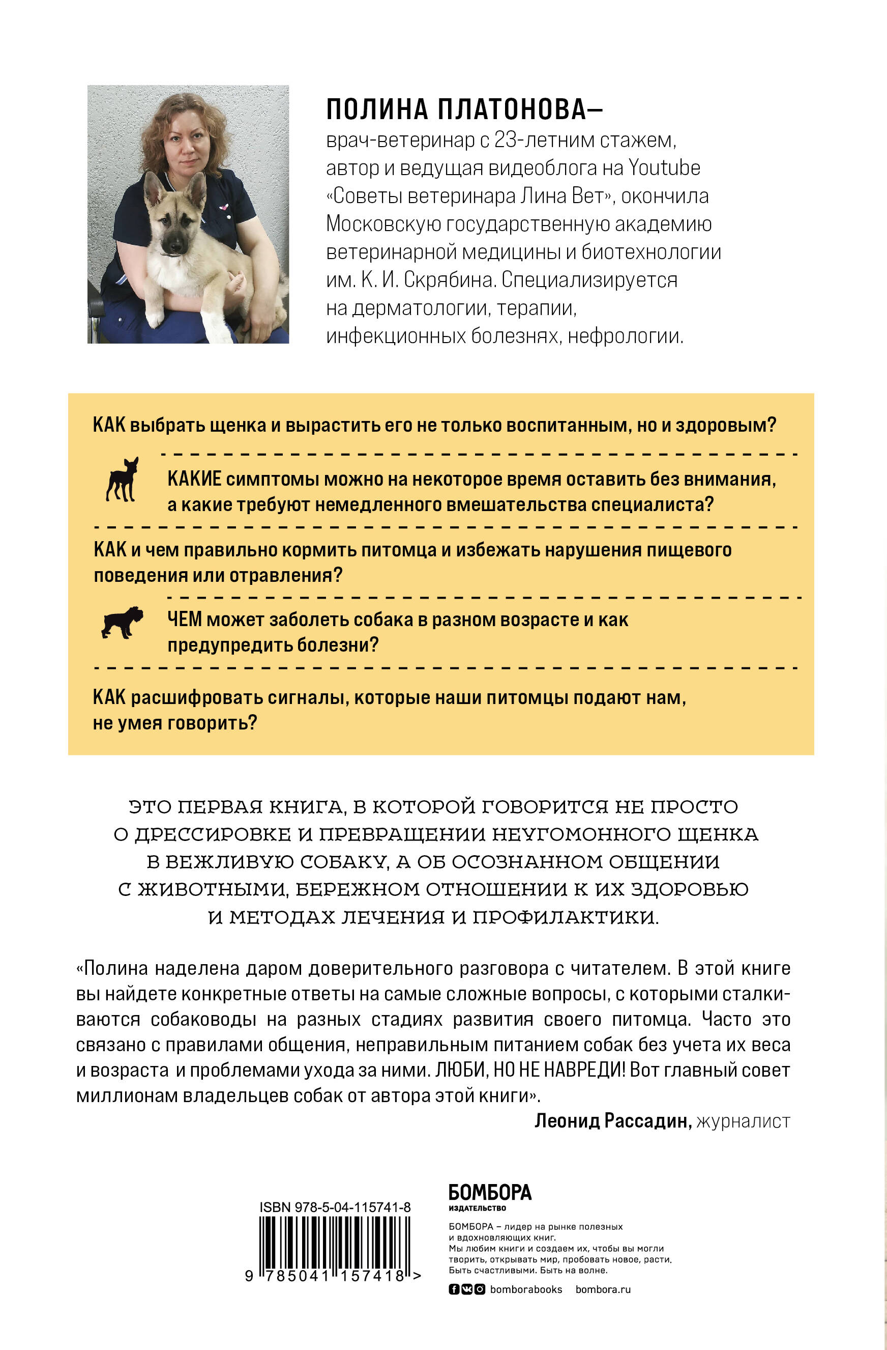 В книге ветеринара и блогера Лины Вет вы найдете десятки конкретных ответов на самые сложные вопросы, с которыми сталкиваются собаководы на разных стадиях развития своего питомца. Более 50 тысяч подписчиков авторского канала Полины Платоновой «Советы Ветеринара» на YouTube успешно пользуются рекомендациями по кормлению, уходу, вакцинации, стерилизации и другим актуальным темам, связанными с животными.