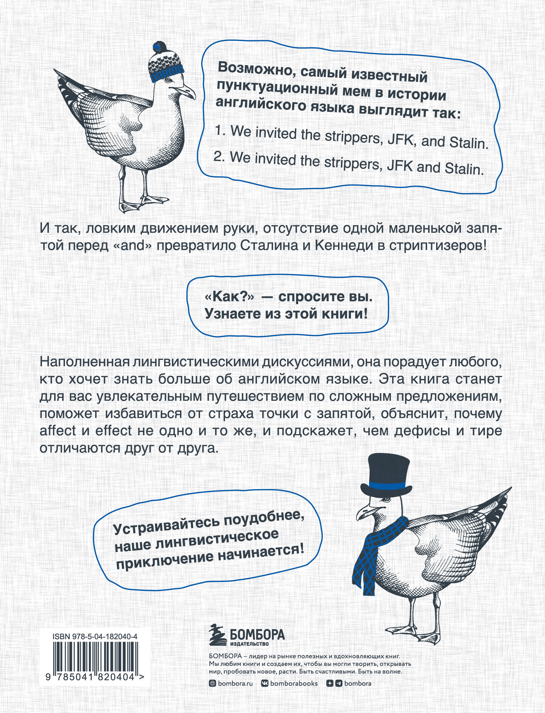 Наполненная лингвистическими дискуссиями, она порадует любого, кто хочет знать больше об английском языке. Эта книга станет для вас увлекательным путешествием по сложным предложениям, поможет избавиться от страха точки с запятой, объяснит, почему affect и effect не одно и то же, и подскажет, чем дефисы и тире отличаются друг от друга.