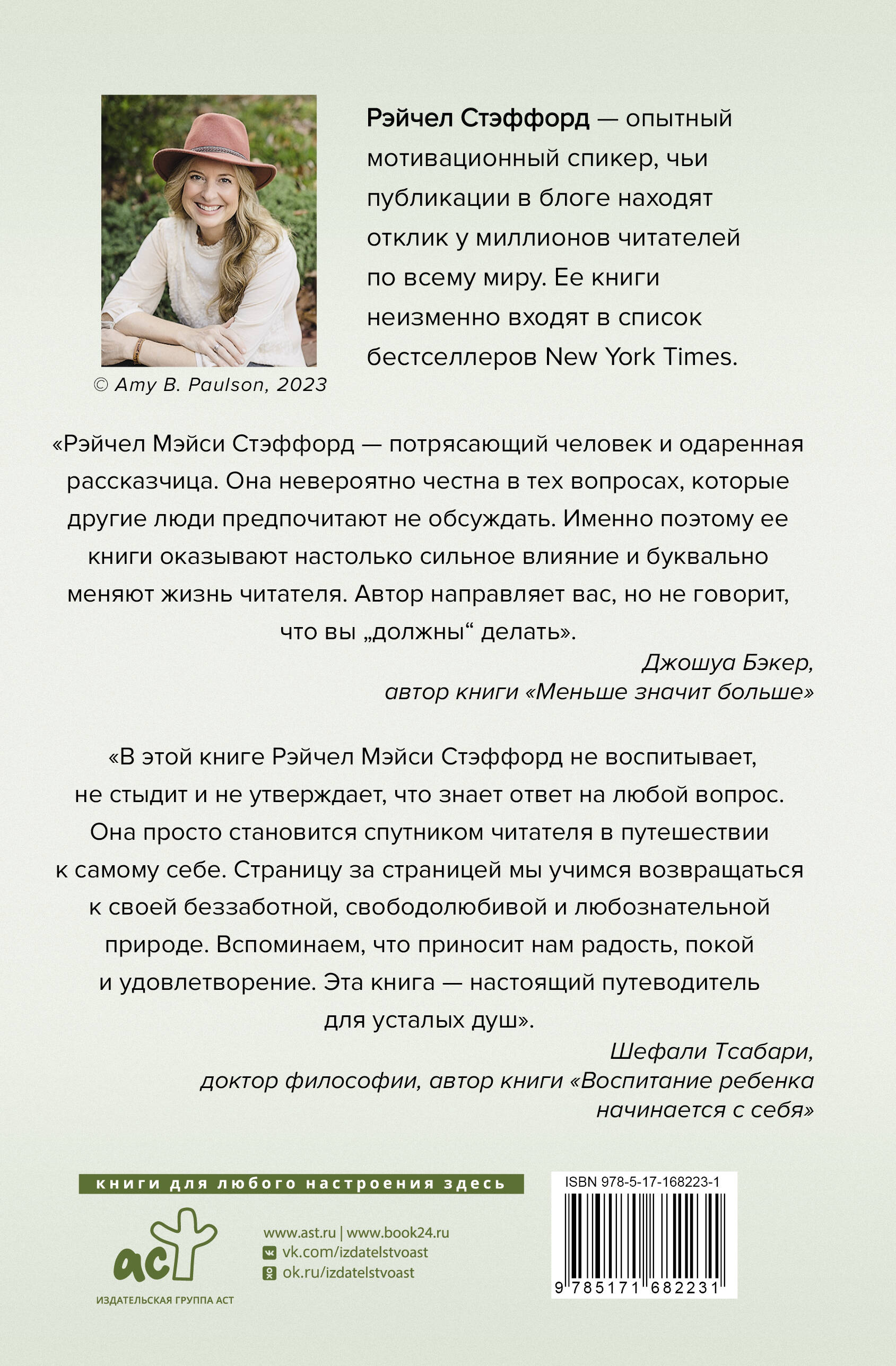 В повседневной суете легко стать заложниками постоянного стресса и разучиться радоваться. Рейчел Мэйси Стэффорд уже много лет помогает уставшим и выгоревшим людям вновь обрести гармонию и покой. Она не дает советов, не призывает стремиться к успеху, не раскачивает эмоционально наш внутренний мир, который и так готов разрушиться от мимолетной тревожной новости.