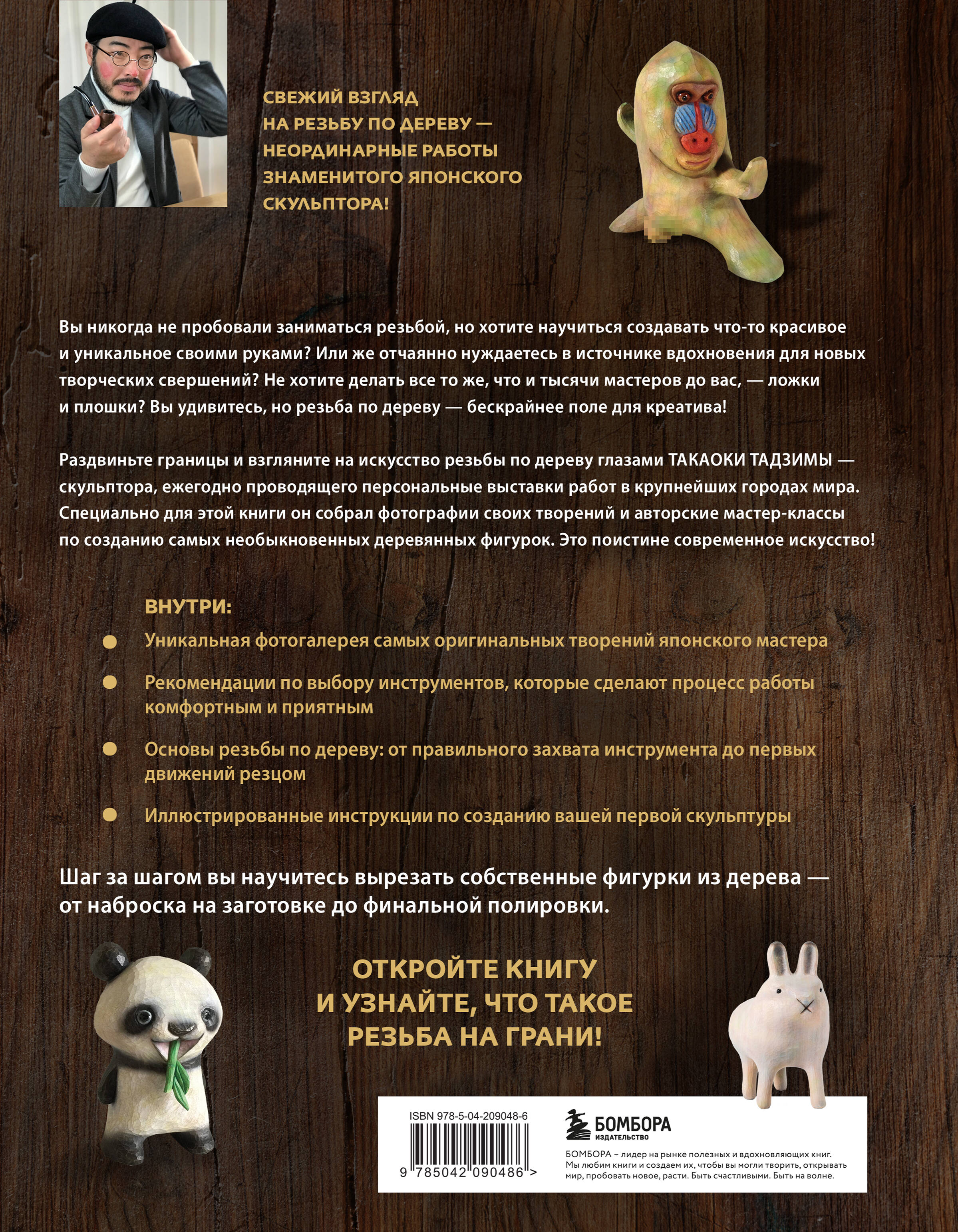Эта книга — ваш ключ к миру современного искусства резьбы по дереву. Такаоки Тадзима, знаменитый японский скульптор, чьи работы выставляются в крупнейших галереях мира, делится своим многолетним опытом и вдохновением. Вместо привычных ложек и плошек вы научитесь создавать настоящие деревянные скульптуры, которые удивляют своей оригинальностью.